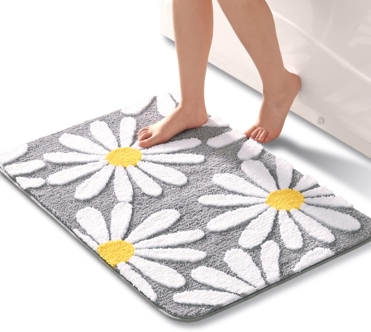 Сладък килим за баня с мотив на маргаритки, с уникален дизайн и ярки цветове, изглежда много красиво и привлекателно, добавя блясък към банята, перфектната комбинация от практичност и декорация.