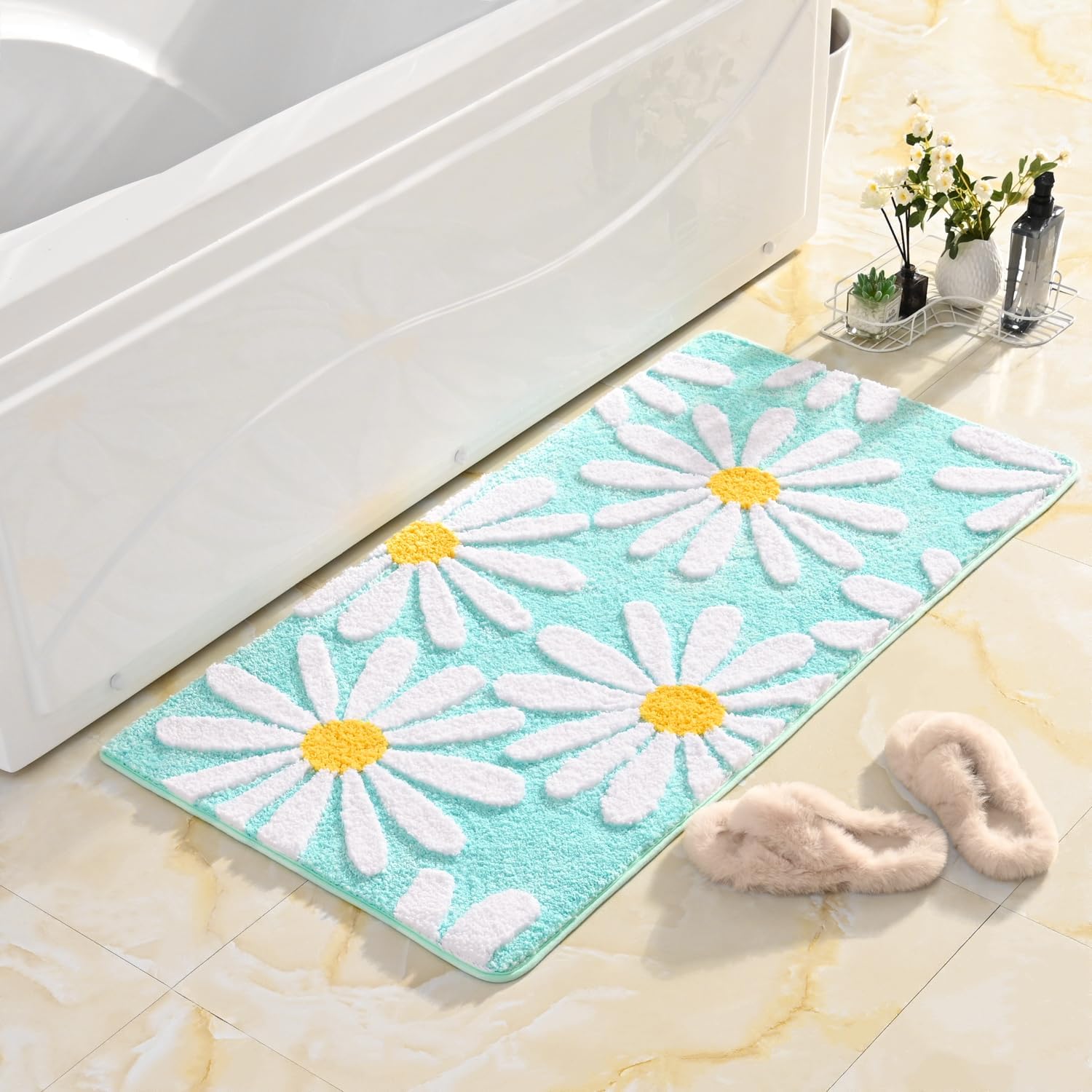 Сладък килим за баня с мотив на маргаритки, с уникален дизайн и ярки цветове, изглежда много красиво и привлекателно, добавя блясък към банята, перфектната комбинация от практичност и декорация.