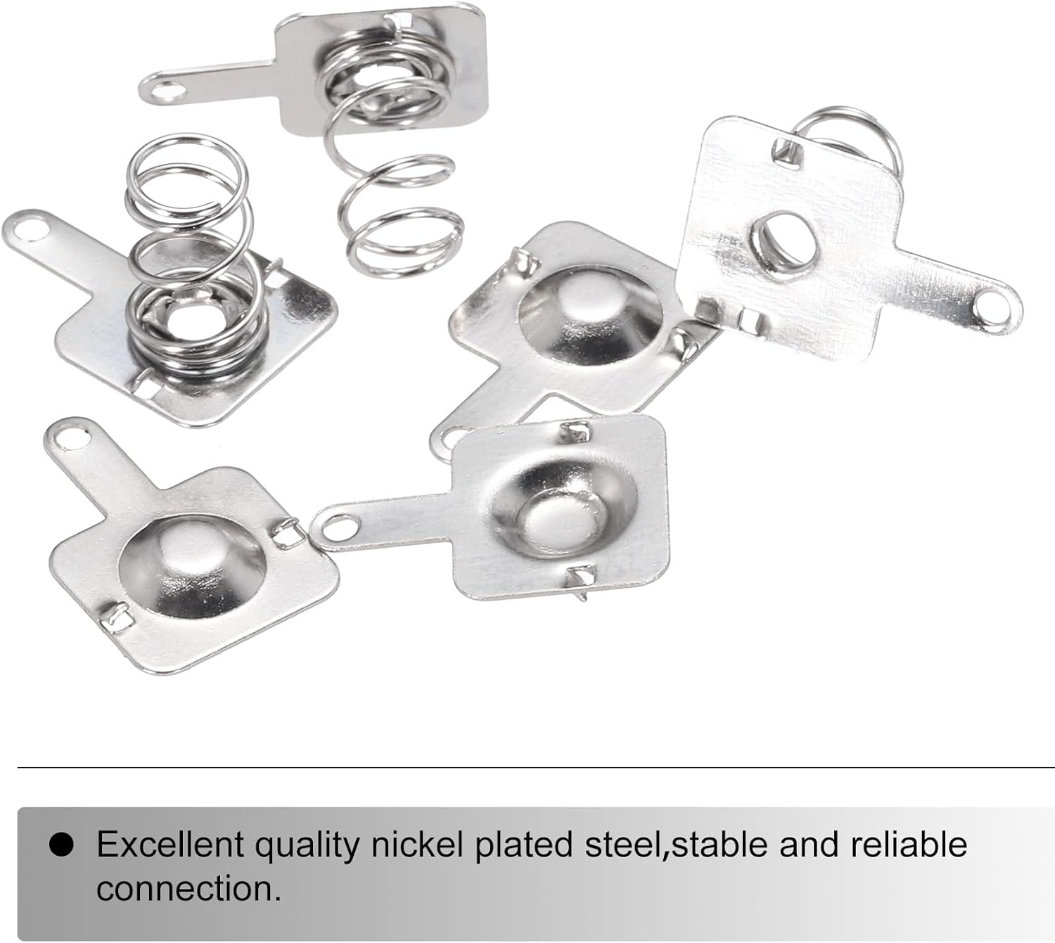 Изработени от висококачествена никелирана стомана, те не само осигуряват отлична проводимост, но и увеличават издръжливостта и ефективно удължават живота на батерията. Проектирани са да се поберат в различни отделения за батерии и са подходящи за различни устройства като дистанционни управления и будилници.