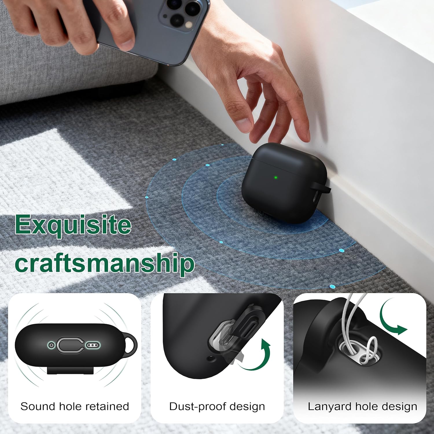 R-fun калъф за AirPods Pro 3 (2025), мек силиконов защитен калъф, съвместим с Apple AirPods Pro 3-то поколение (USB-C кабел) за мъже и жени с комплект за почистване и ключодържател, черен
