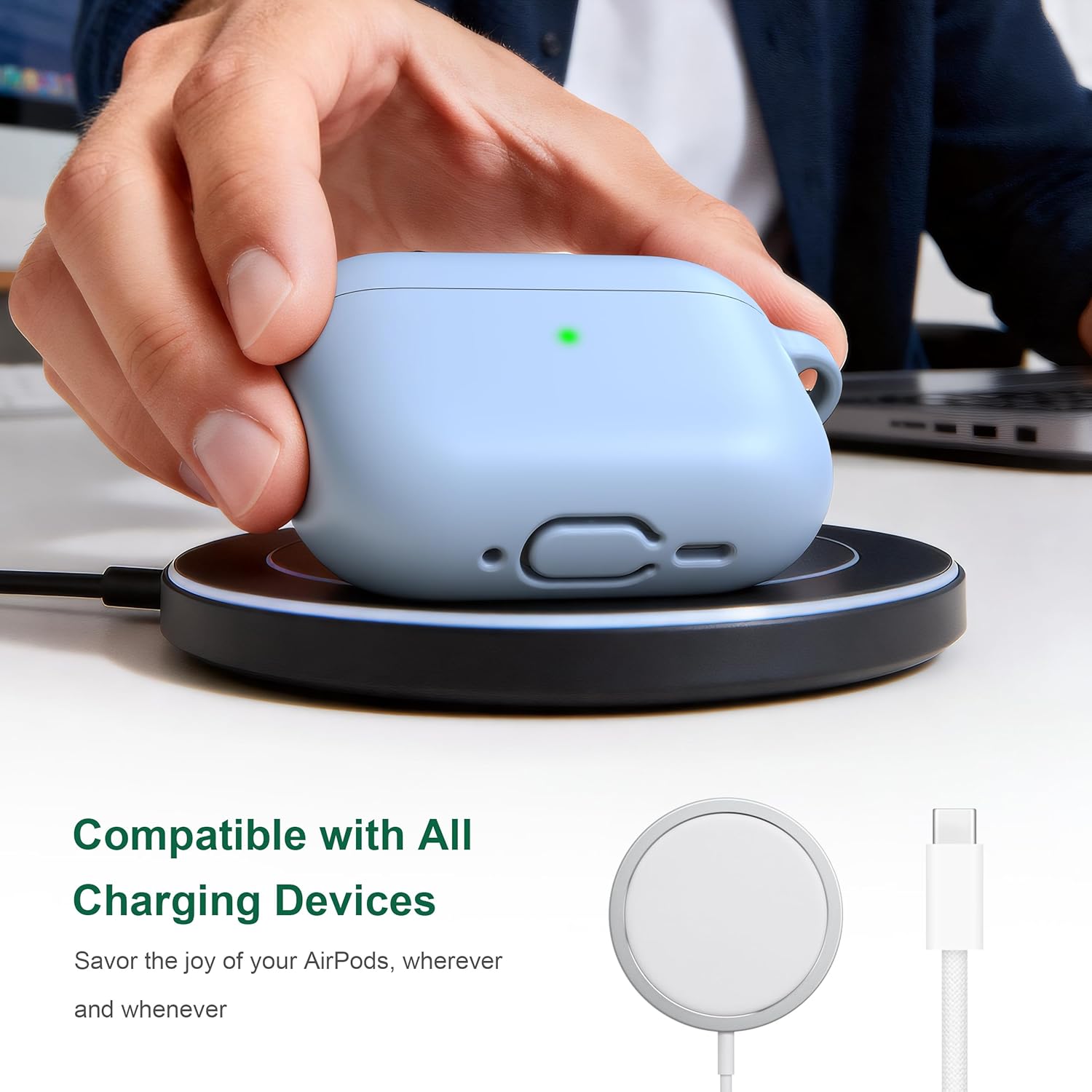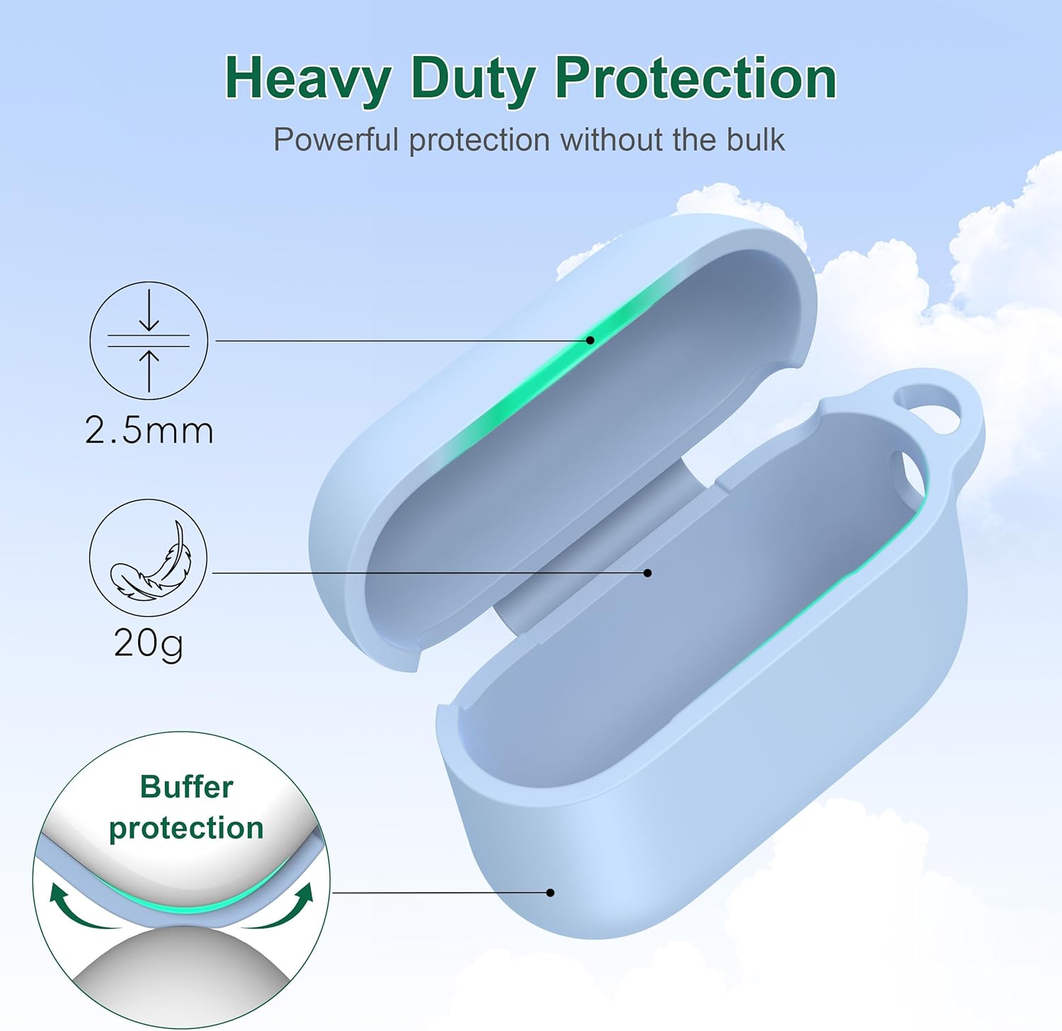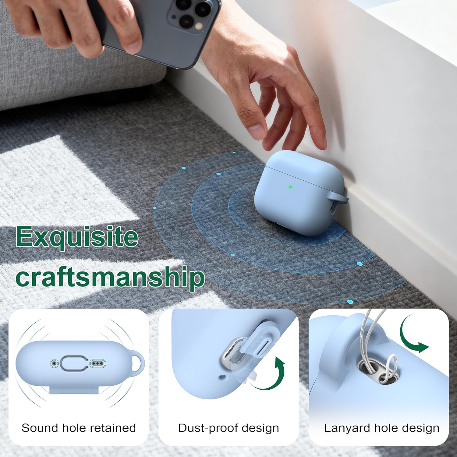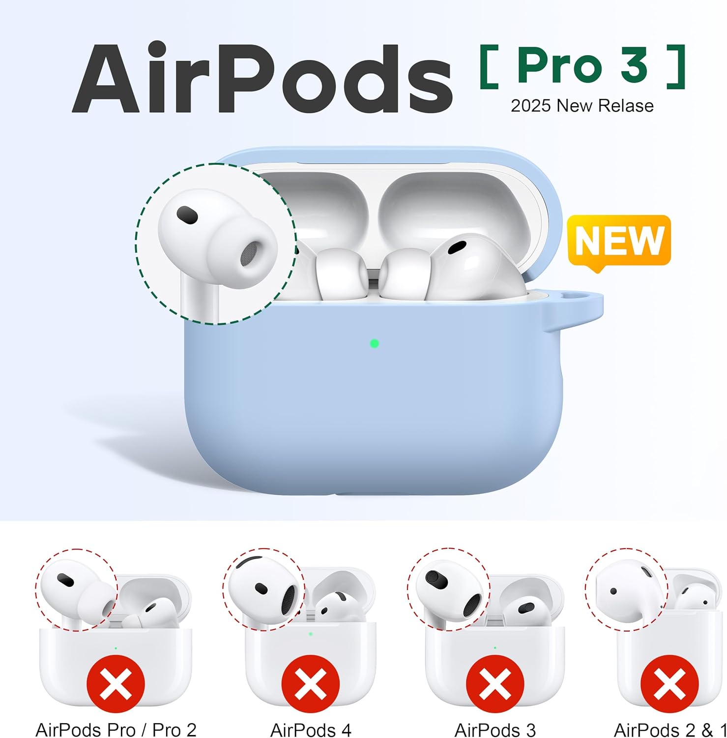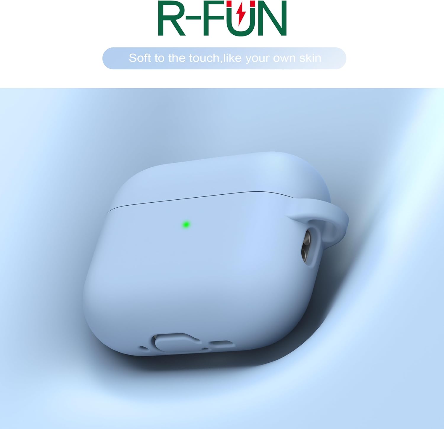 R-fun Калъф за AirPods Pro 3 (2025), Мек силиконов защитен калъф, съвместим с Apple AirPods Pro 3-то поколение (USB-C кабел) за мъже и жени с комплект за почистване и ключодържател, небесно син
