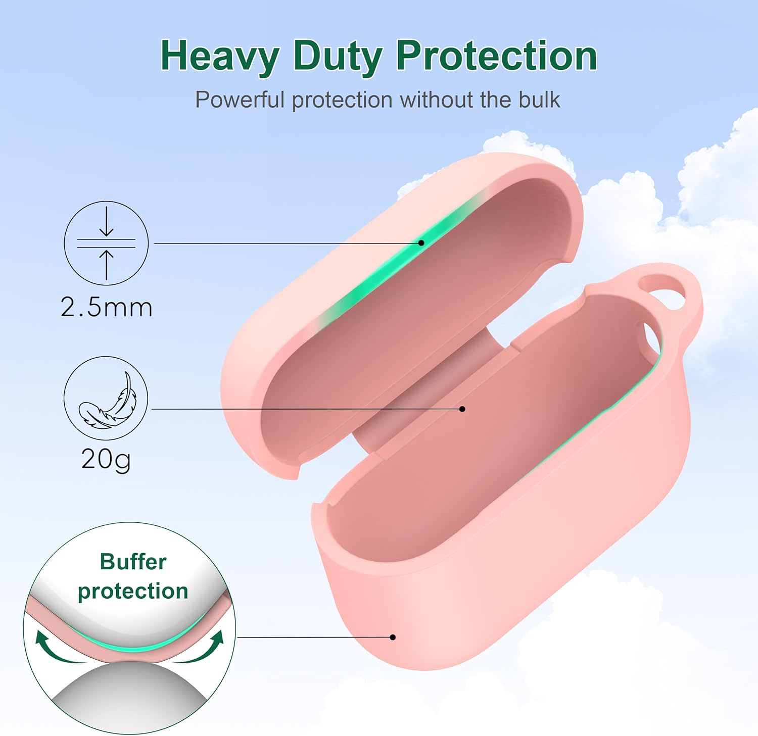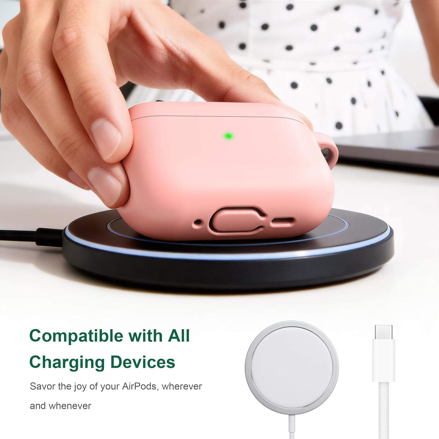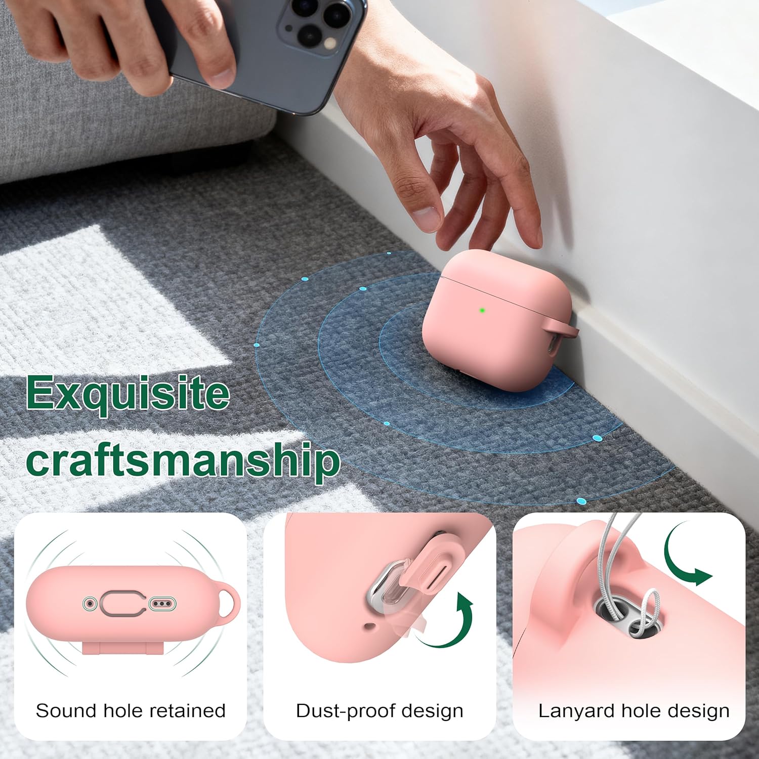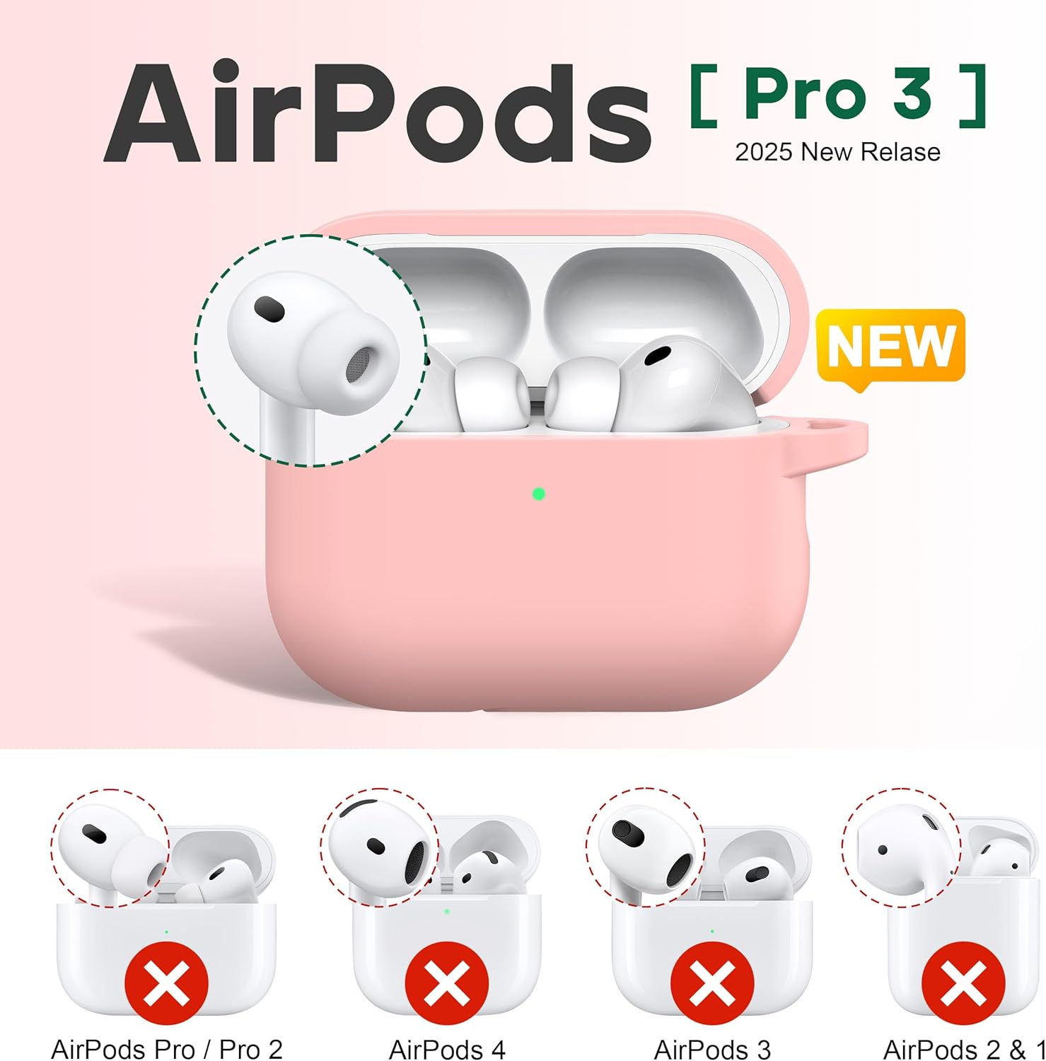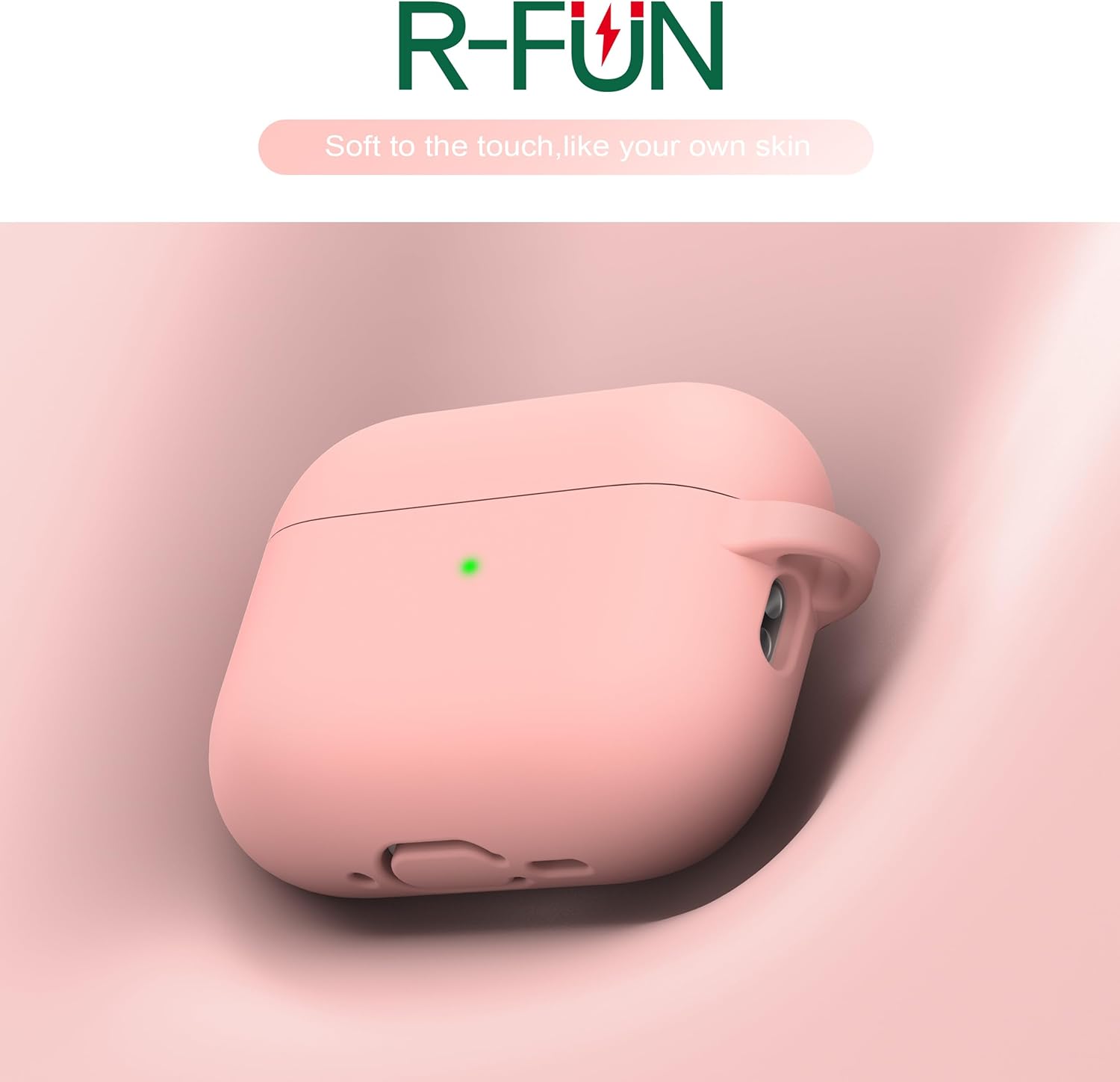R-fun калъф за AirPods Pro 3 (2025), мек силиконов защитен калъф, съвместим с Apple AirPods Pro 3-то поколение (USB-C кабел) за мъже и жени с комплект за почистване и ключодържател, пясъчно розов