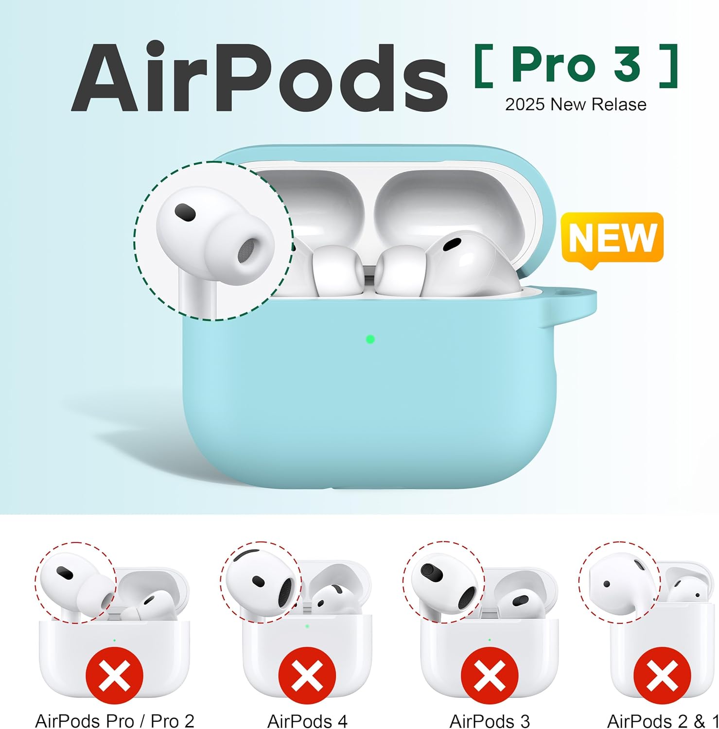 • Съвместим с Apple AirPods Pro 3-то поколение. Комплектът включва 1 x калъф за AirPods Pro 3, 1 x калъф с ключодържател. Моля, обърнете внимание, че не е подходящ за AirPods 1 и AirPods 2, AirPods Pro 2/1. AirPods Pro 3 не са включени.