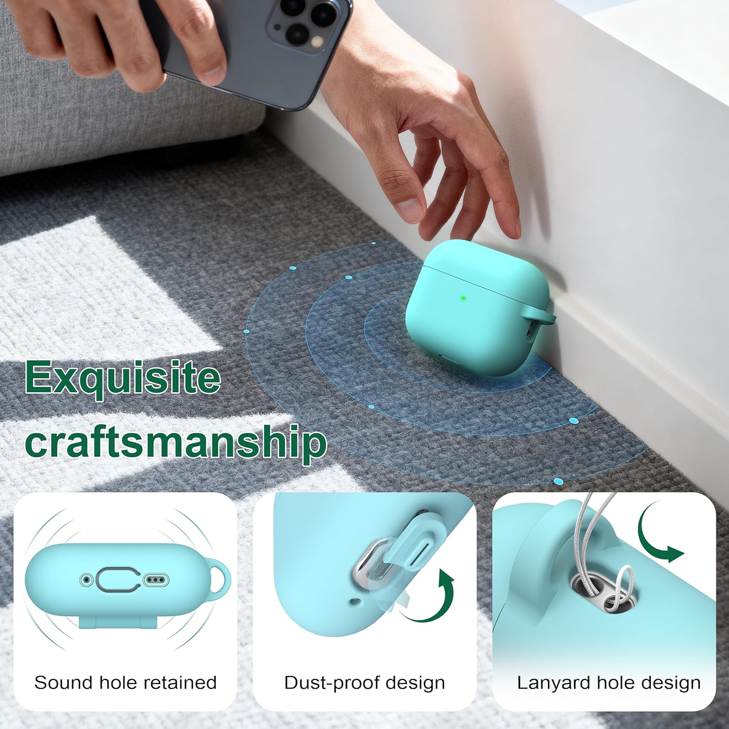 • Включен карабинер Всеки калъф е снабден с метална карабинерна кука, която ви позволява удобно да закрепите чантата на Airpod Pro 3 към дамска чанта или раница.