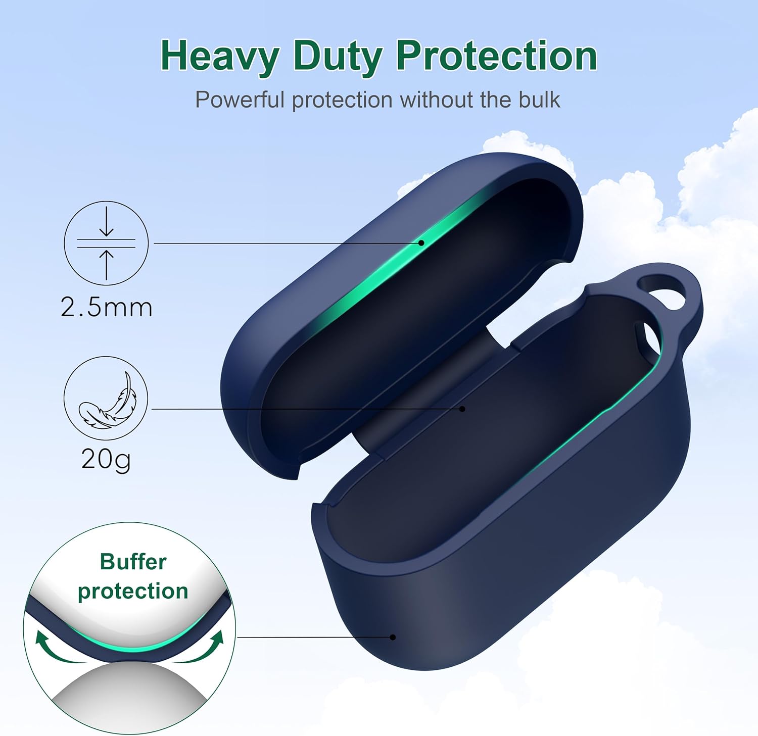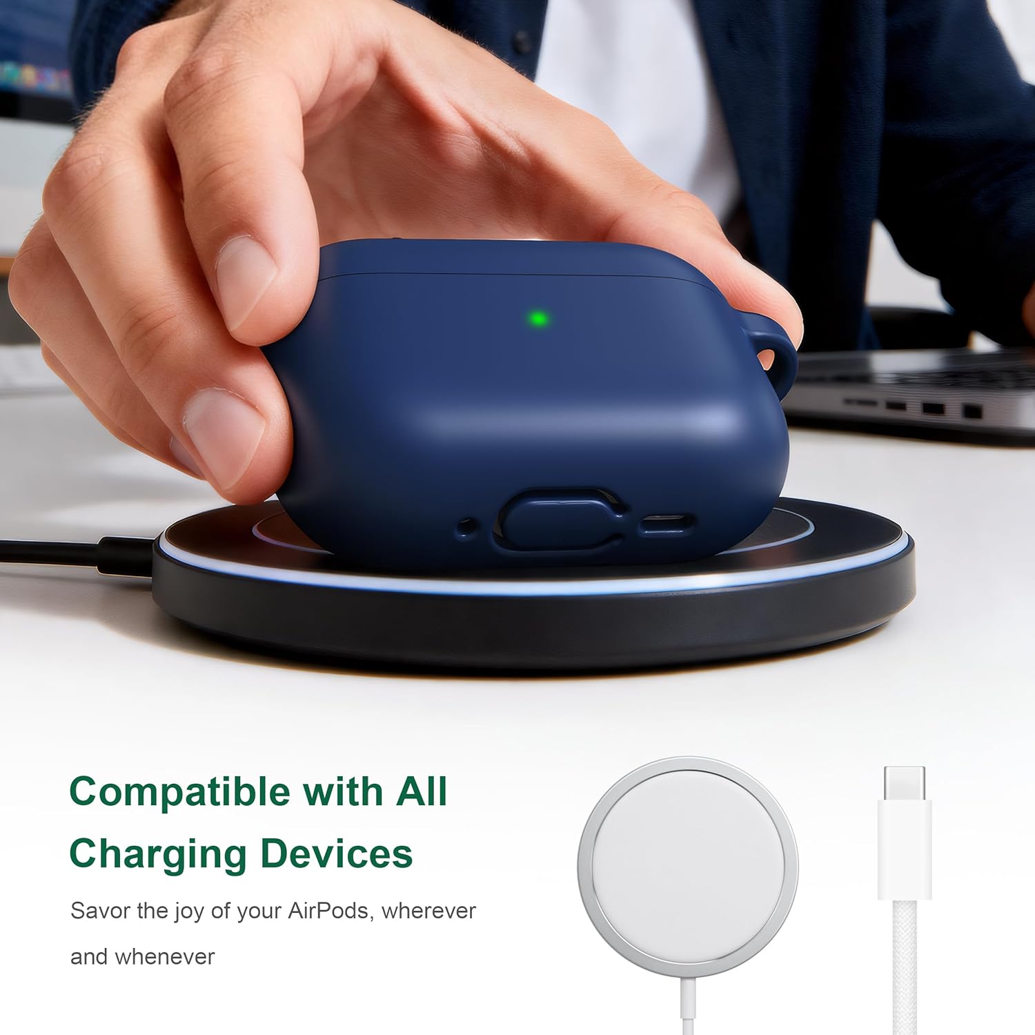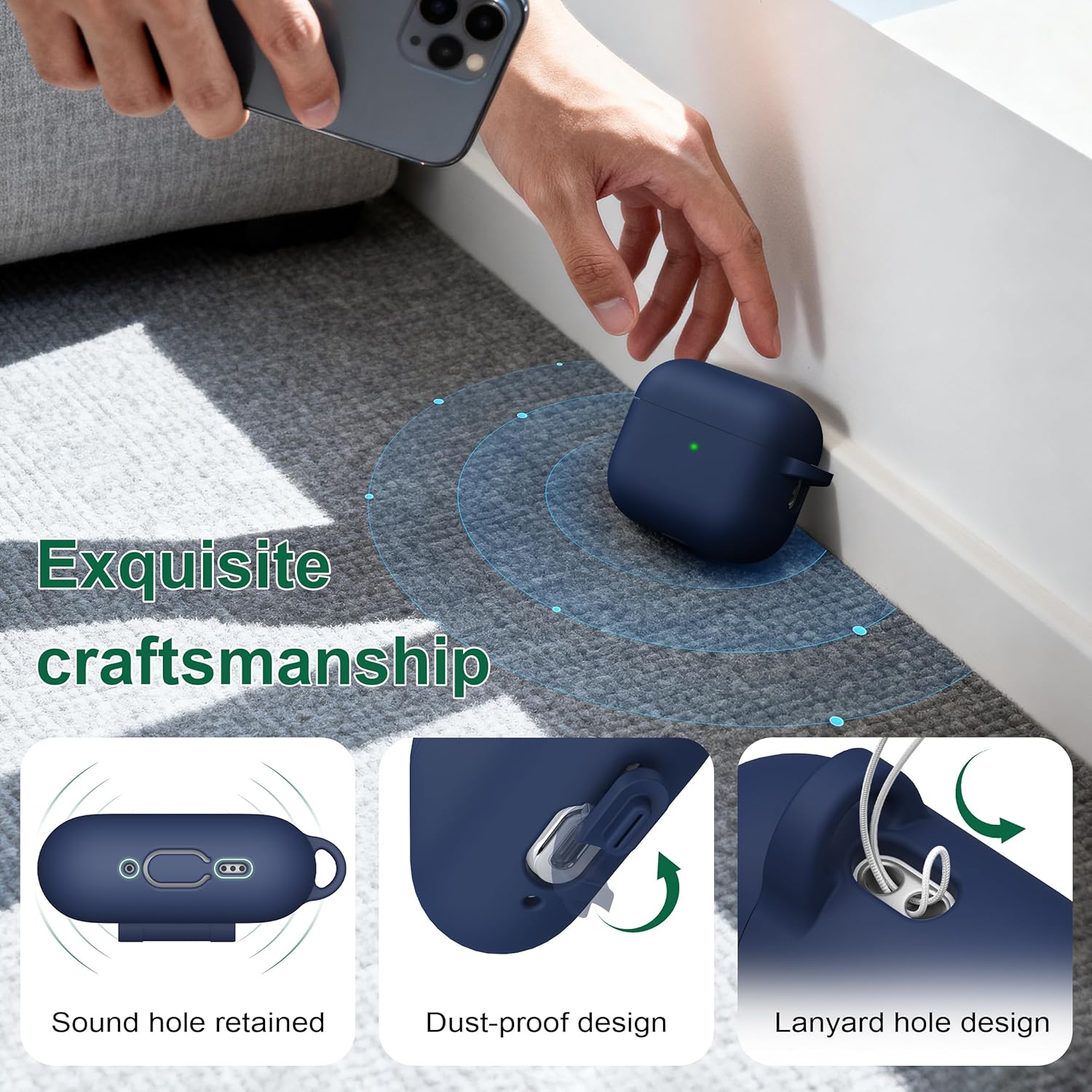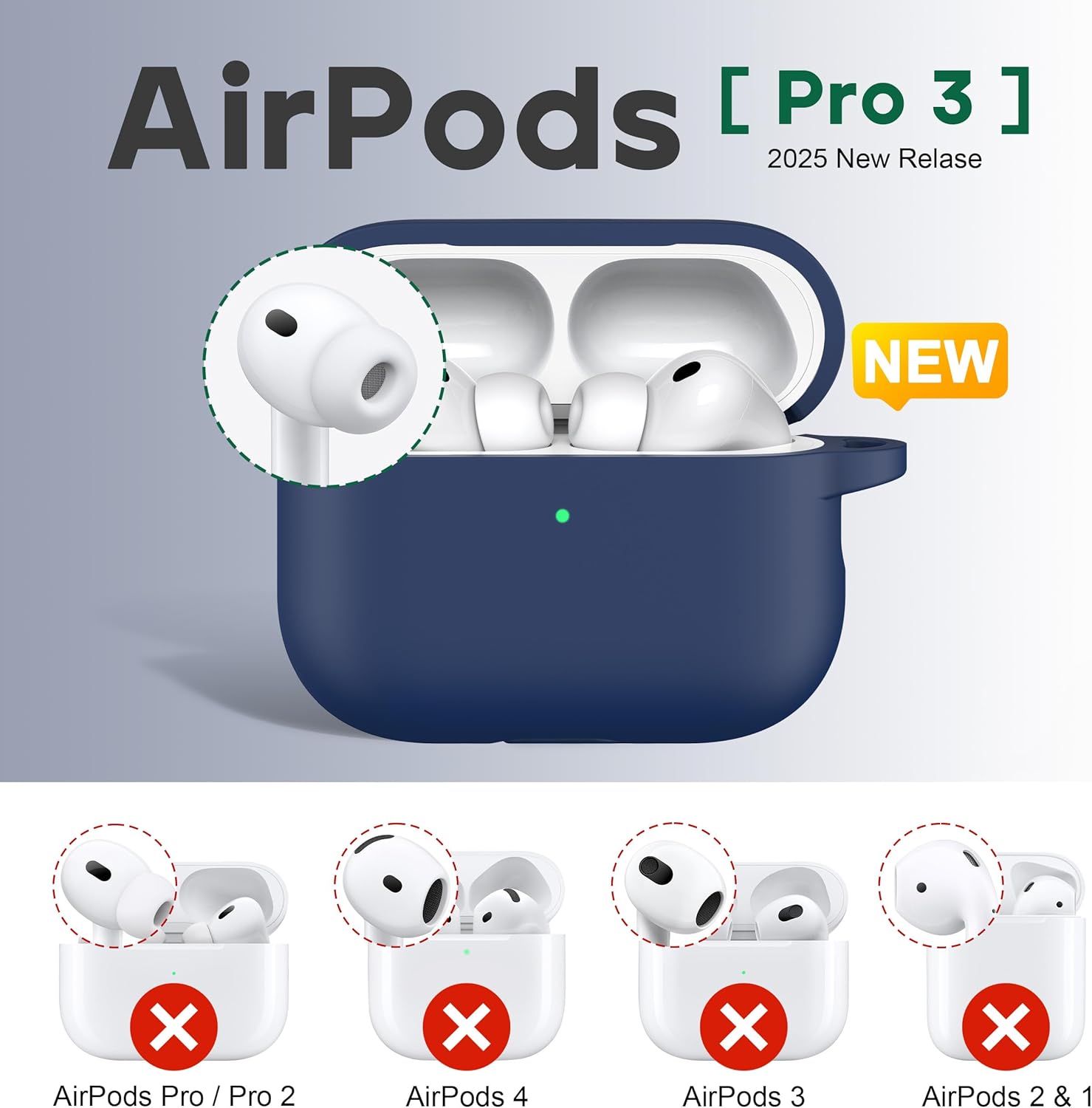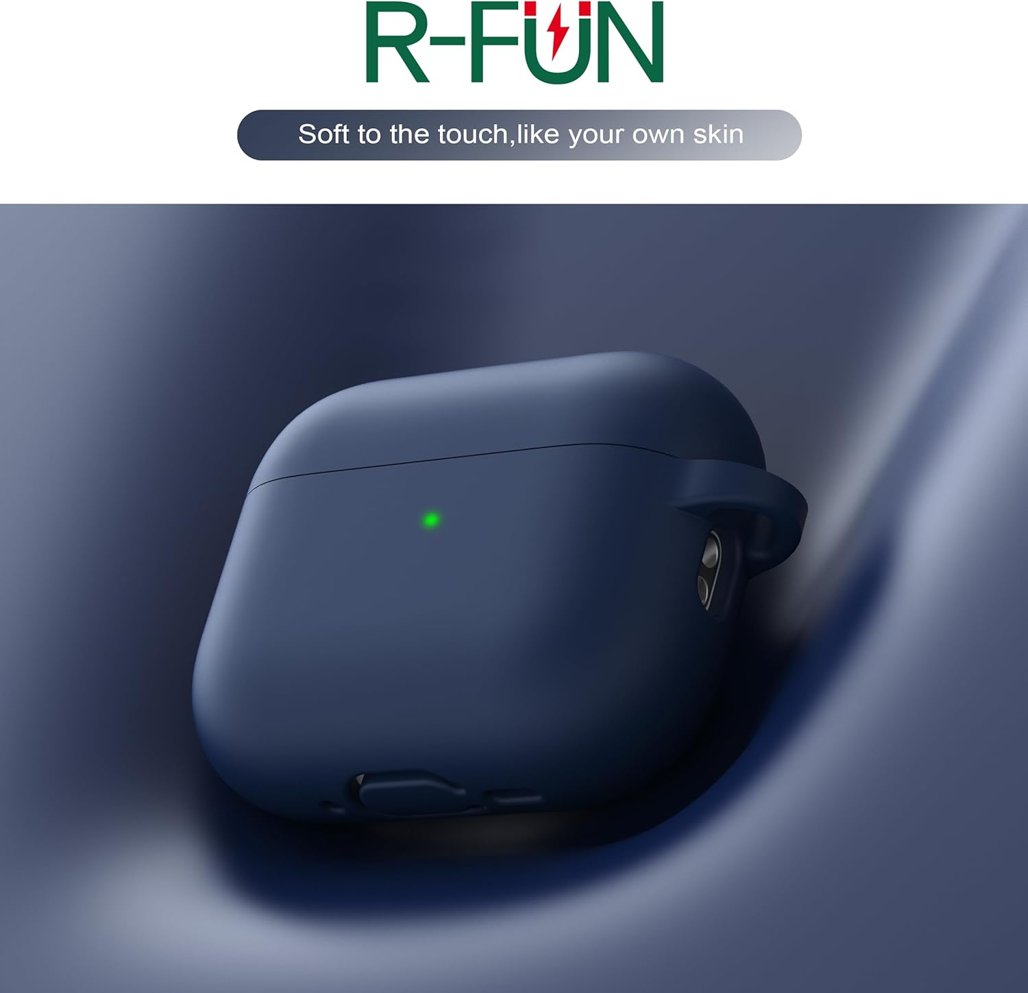 R-fun калъф за AirPods Pro 3 (2025), мек силиконов защитен калъф, съвместим с Apple AirPods Pro 3-то поколение за жени и мъже с комплект за почистване и ключодържател, полунощно син