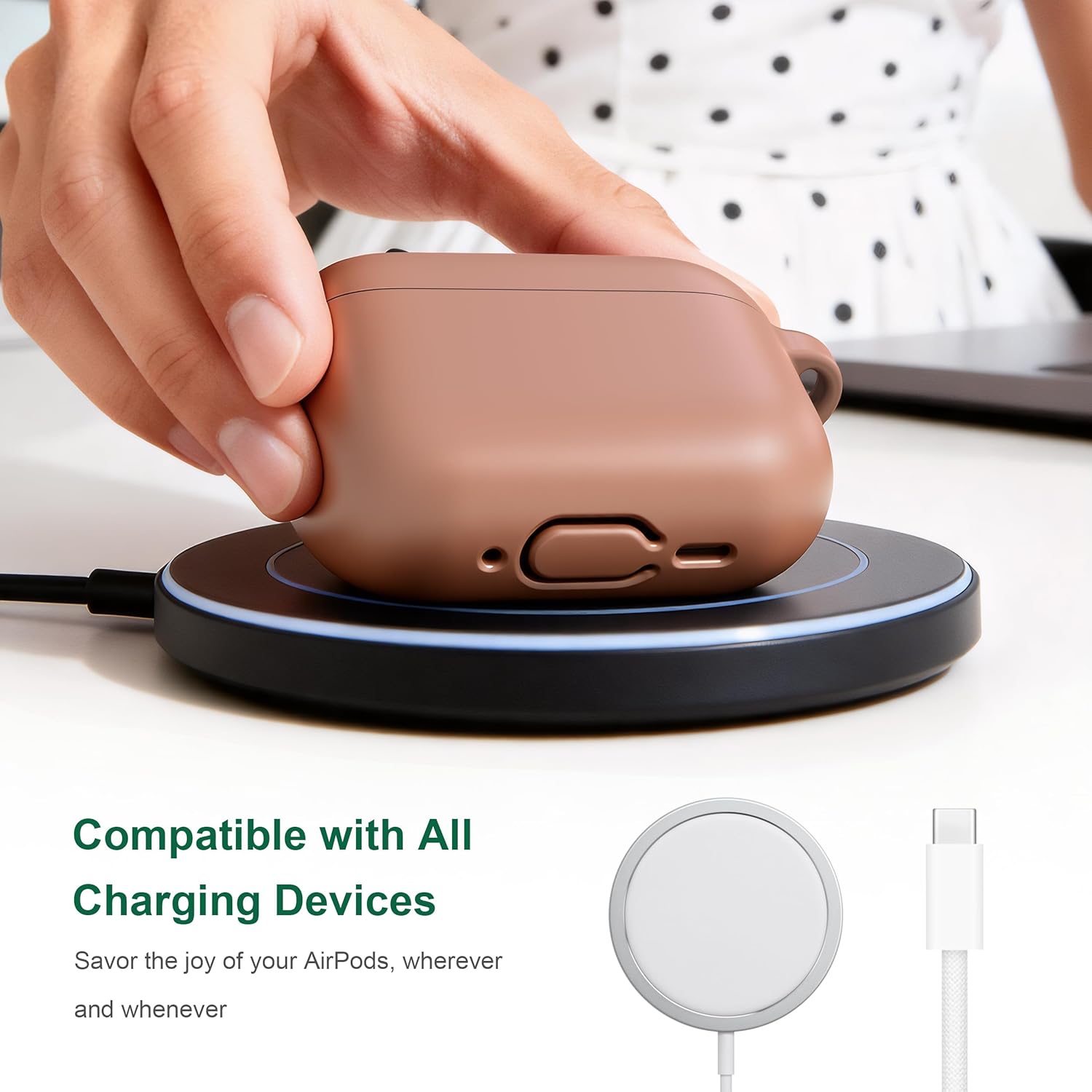 R-fun Калъф за AirPods Pro 3-то поколение с комплект за почистване, мек силиконов защитен калъф за Apple AirPods Pro 3 за мъже и жени, аксесоари за калъфи за AirPods Pro с ключодържател, чай с мляко