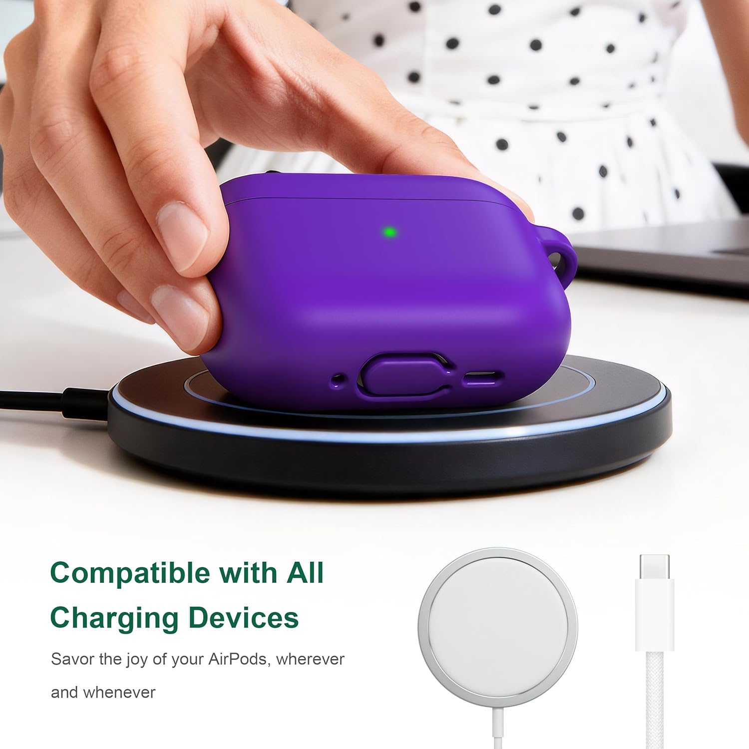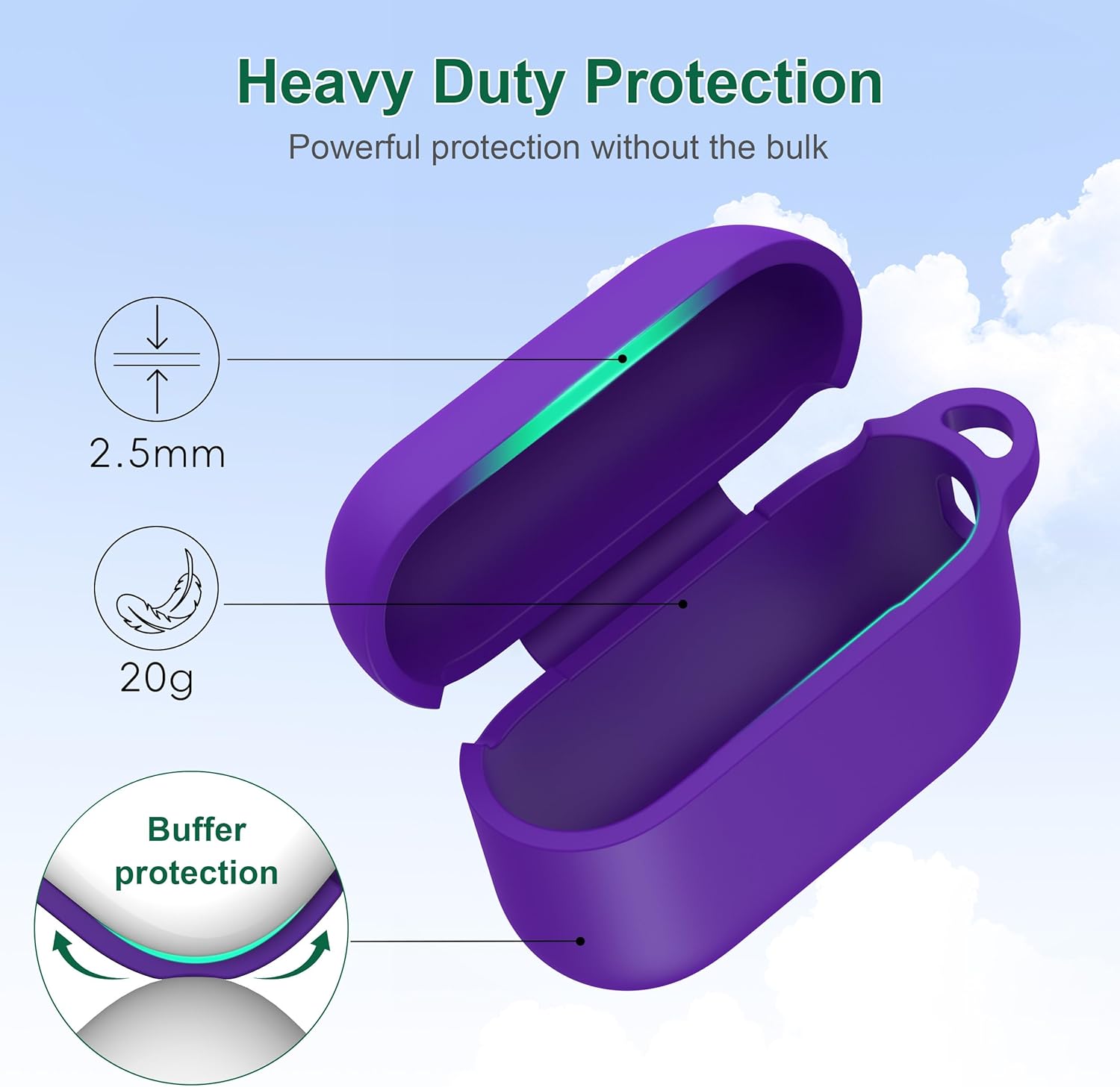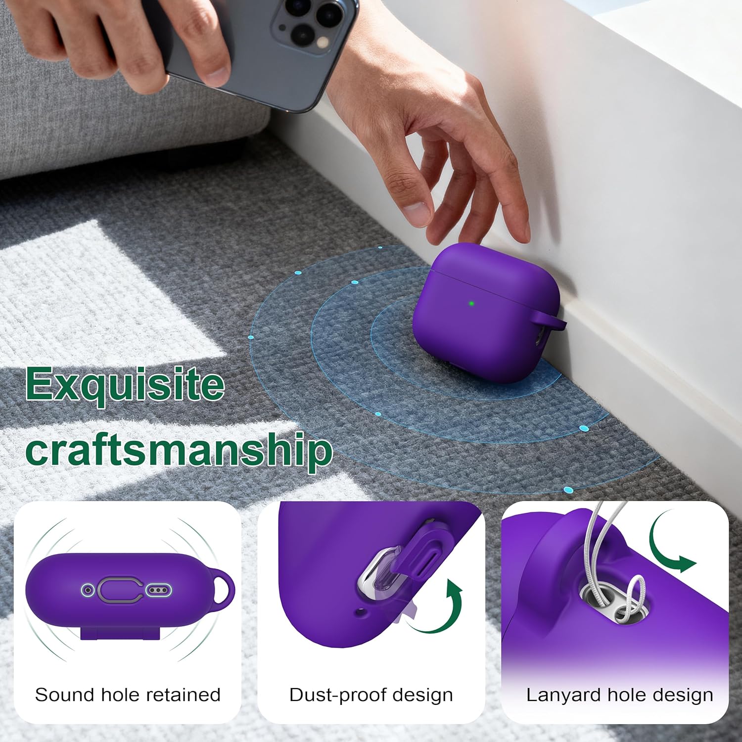 • Висококачествен материал: Изработен от висококачествен еластомерен силикон, мек, лек, издръжлив и с гладка повърхност, той предпазва кожата ви от раздразнения. Водоустойчив, устойчив на пот и надраскване за по-голяма безопасност на вашите AirPods Pro 3 калъфи.