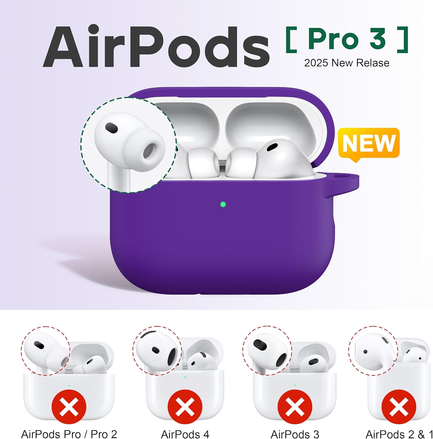 R-fun Калъф за AirPods Pro 3-то поколение с комплект за почистване, мек силиконов защитен калъф за Apple AirPods Pro 3 за мъже и жени, аксесоари за калъфи за AirPods Pro с ключодържател, лилав