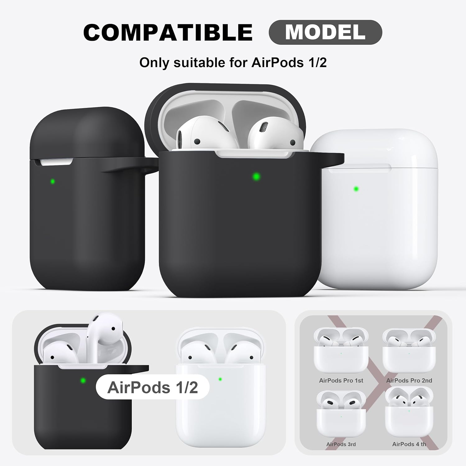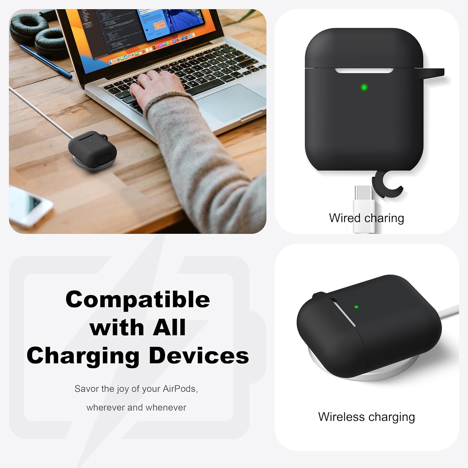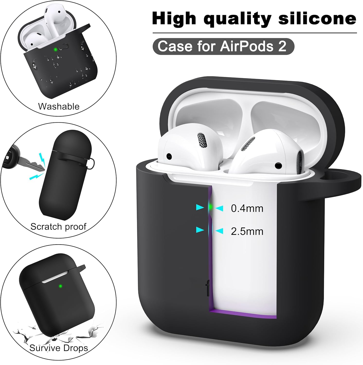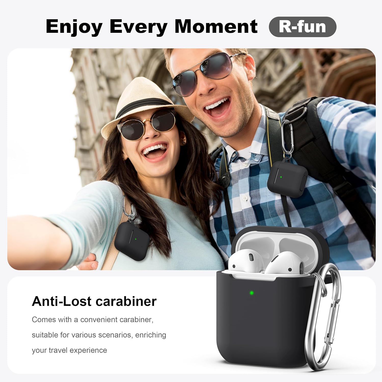 R-fun Съвместим с AirPods 2-ро поколение 2019, калъф за 1-во поколение 2016 с комплект за почистване и ключодържател, мека силиконова защита за Apple AirPods, черен