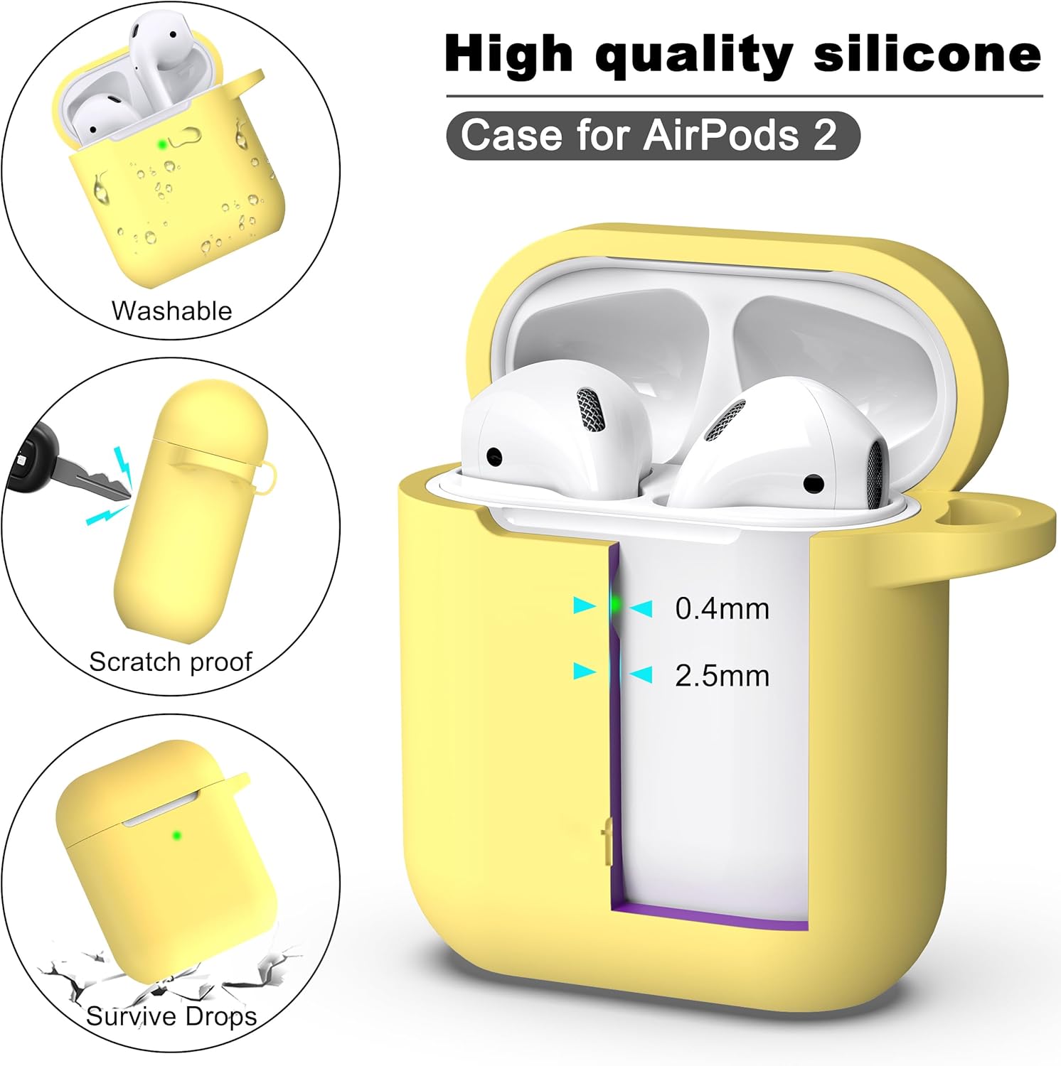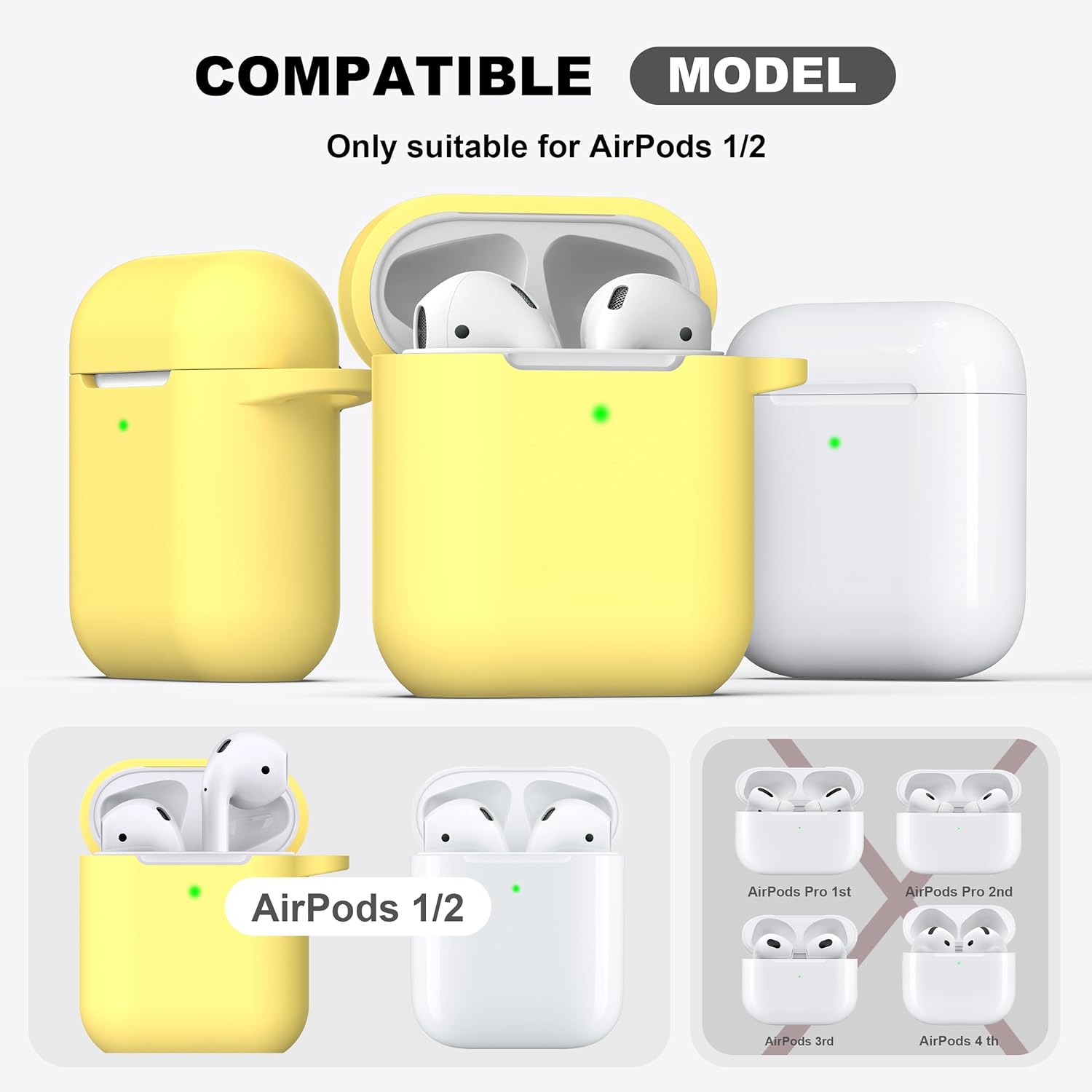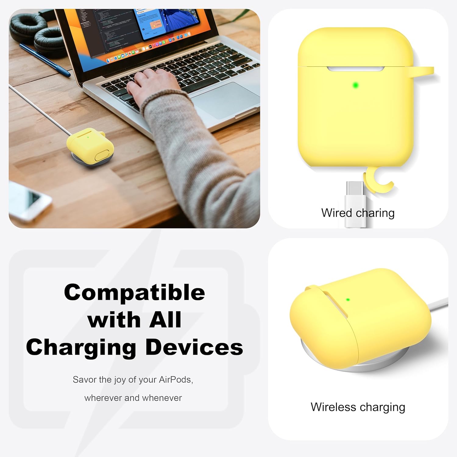 R-fun Съвместим с AirPods 2-ро поколение 2019, калъф за 1-во поколение 2016 с комплект за почистване и ключодържател, мека силиконова защита за Apple AirPods, жълта