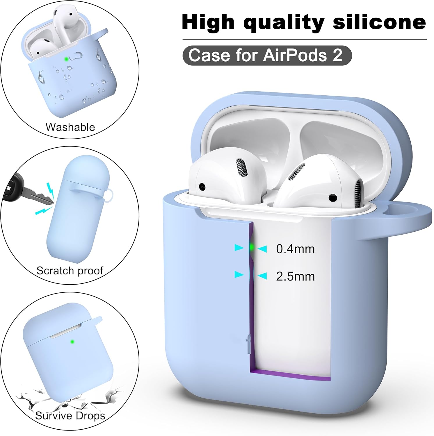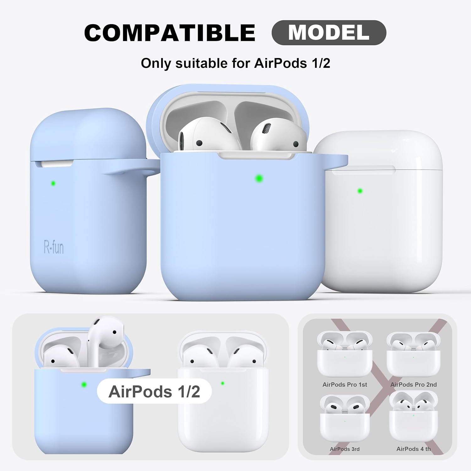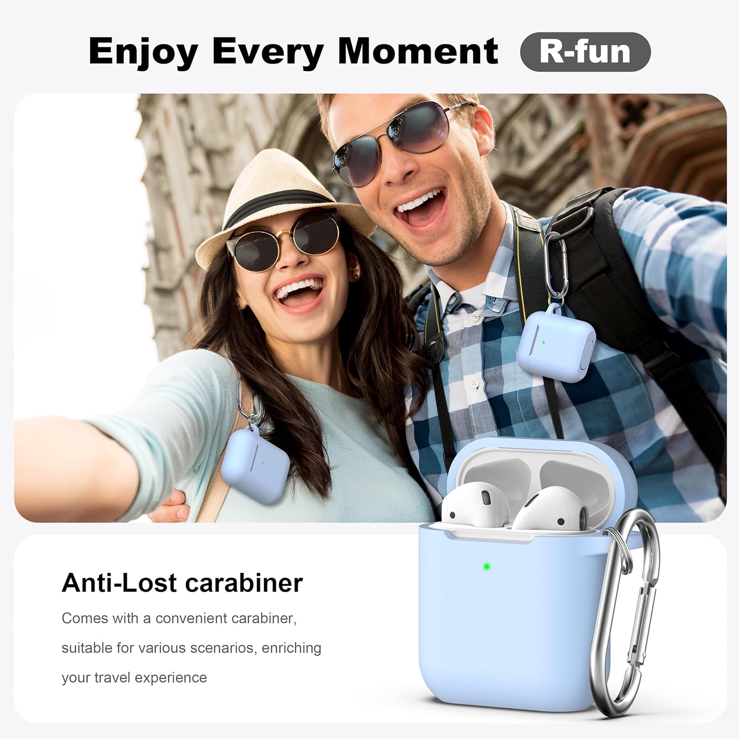 R-fun Съвместим с AirPods 2-ро поколение 2019, калъф за 1-во поколение 2016 с комплект за почистване и ключодържател, мека силиконова защита за Apple AirPods, небесно син