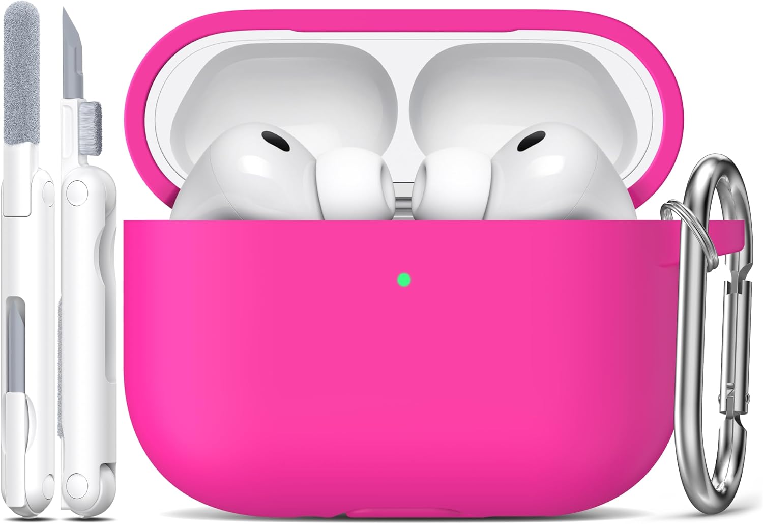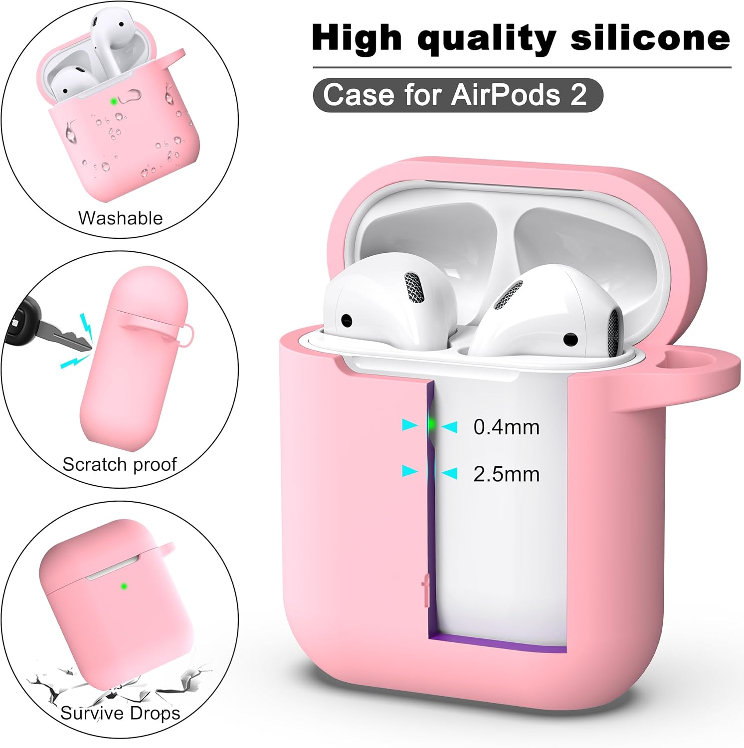 R-fun Съвместим с AirPods 2-ро поколение 2019, калъф за 1-во поколение 2016 с комплект за почистване и ключодържател, мека силиконова защита за Apple AirPods, розов