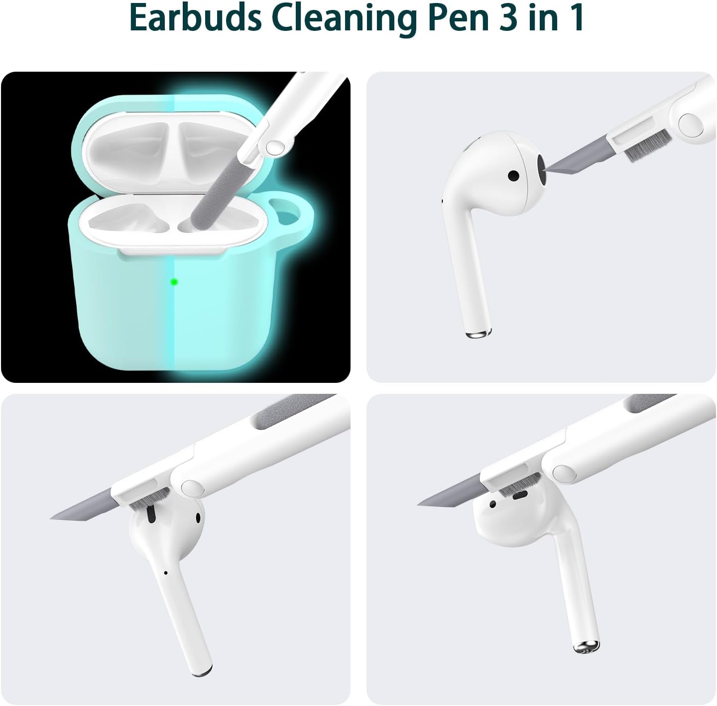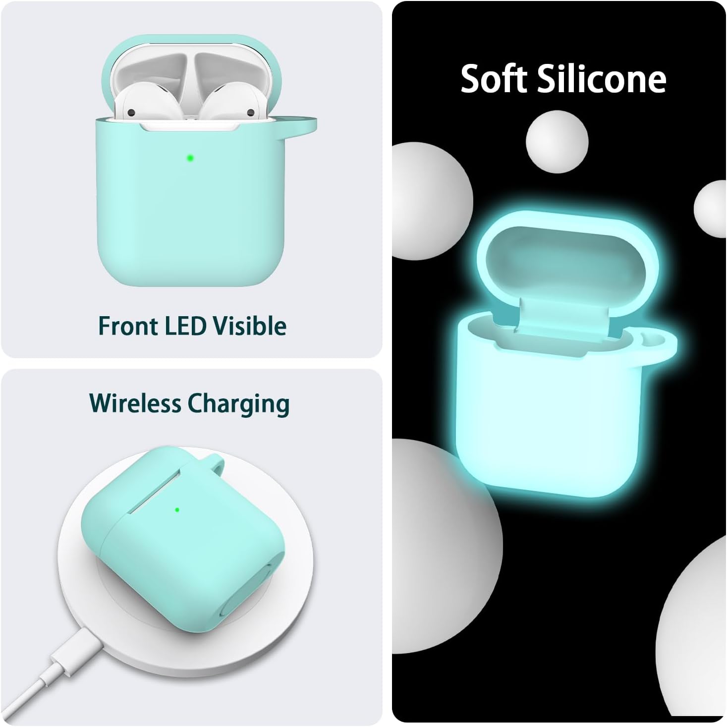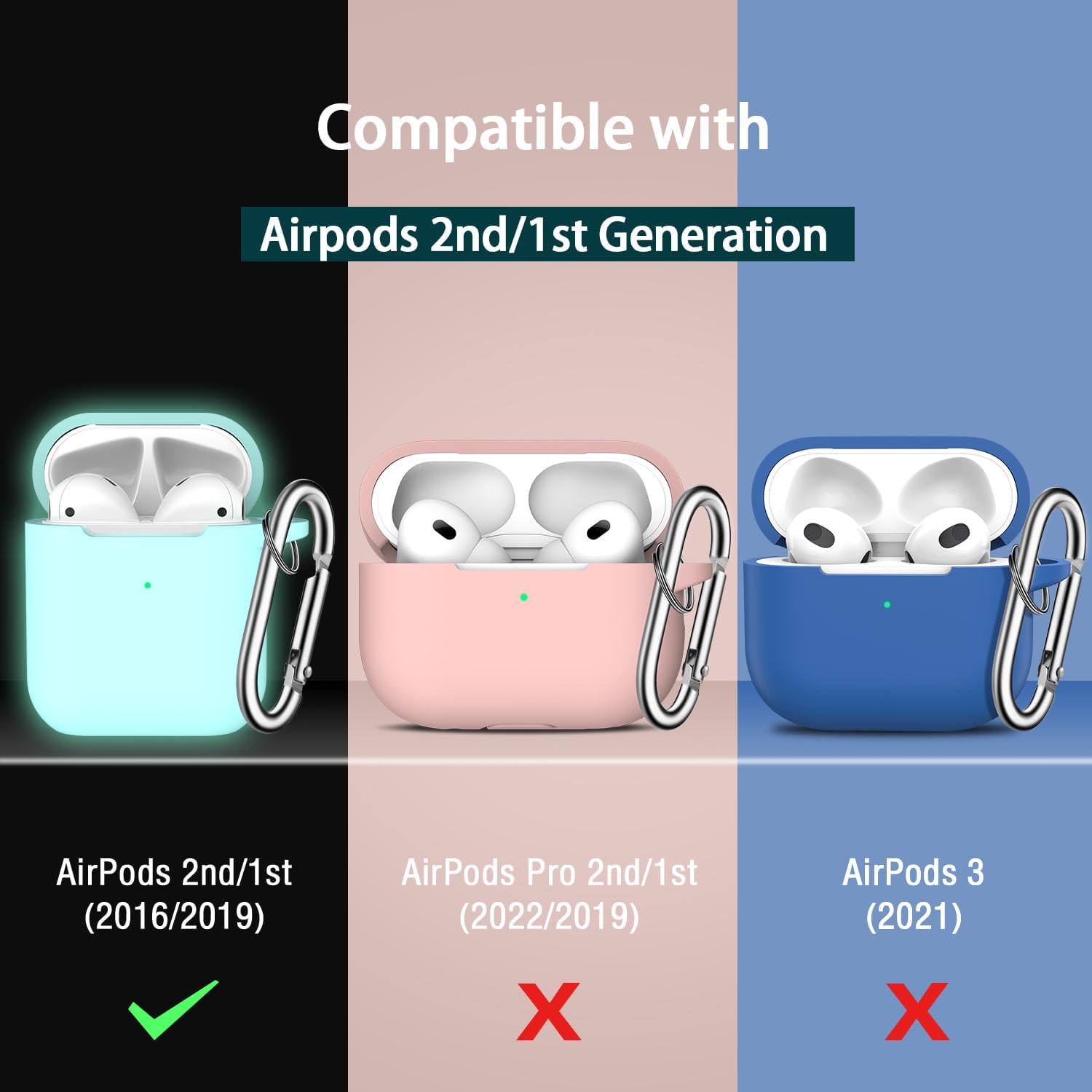 R-fun Съвместим с AirPods 2-ро поколение 2019, калъф за 1-во поколение 2016 с комплект за почистване и ключодържател, мека силиконова защита за Apple AirPods, светлосин