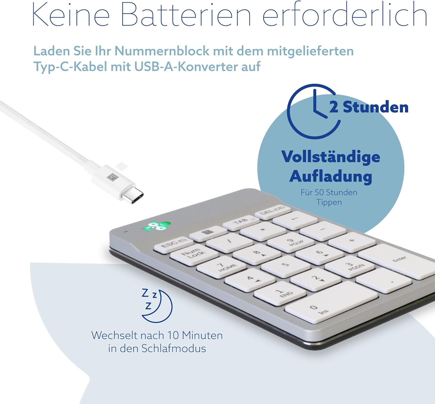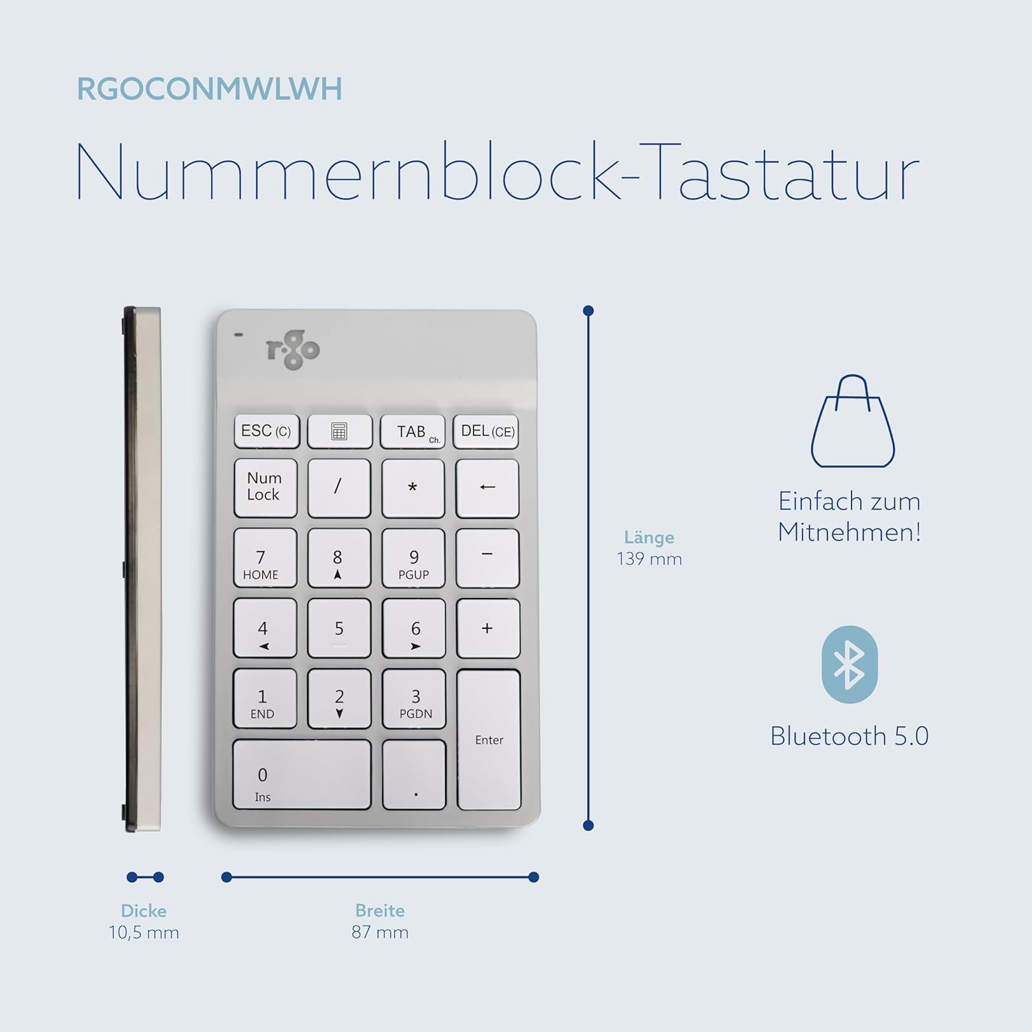 R-Go Numpad Break, с Anti-RSI софтуер, Bluetooth безжична цифрова клавиатура, цифрова клавиатура за компютър, лаптоп, таблет, бяла