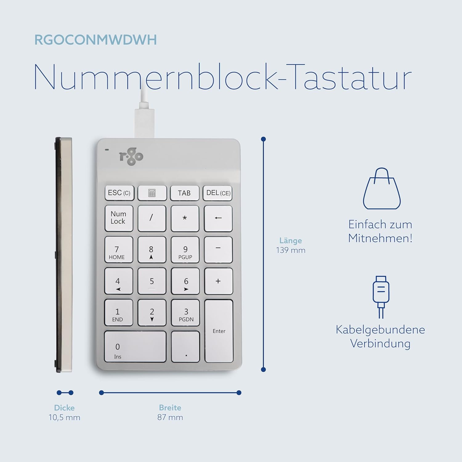 • Съвместимост: тази цифрова клавиатура се предлага с кабел и без кабел. Кабелната версия има 1,5 м USB кабел. Безжичната версия работи чрез Bluetooth връзка. Използвайте отделно или с клавиатури R-Go Break.