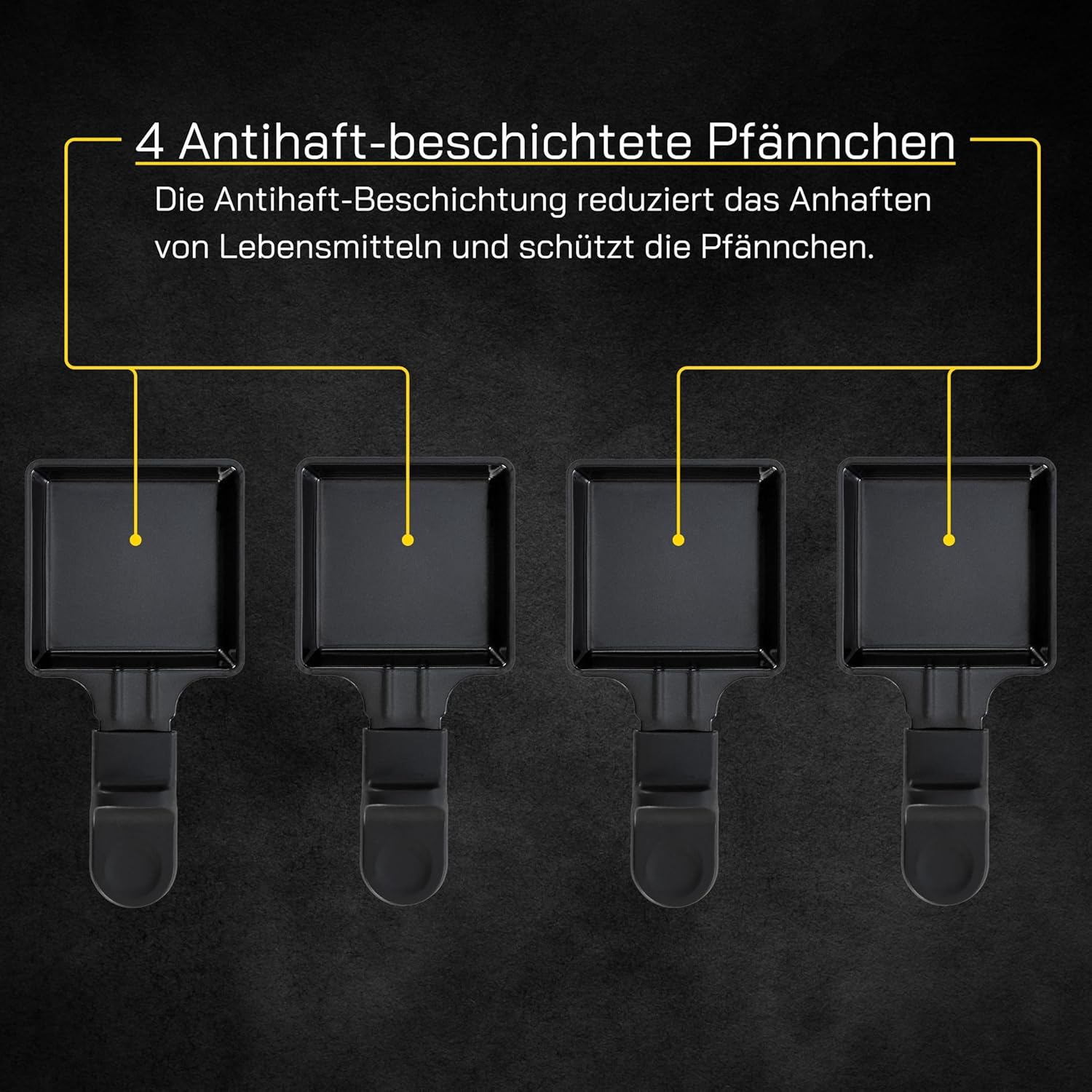 В допълнение ще получите четири големи тави за раклет и една тава за пица за приготвяне на по-голяма храна.