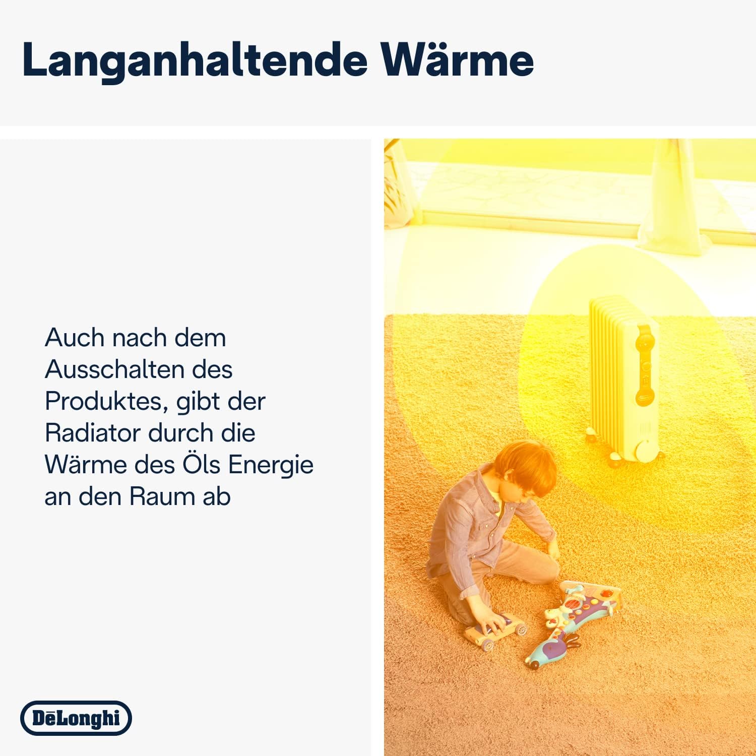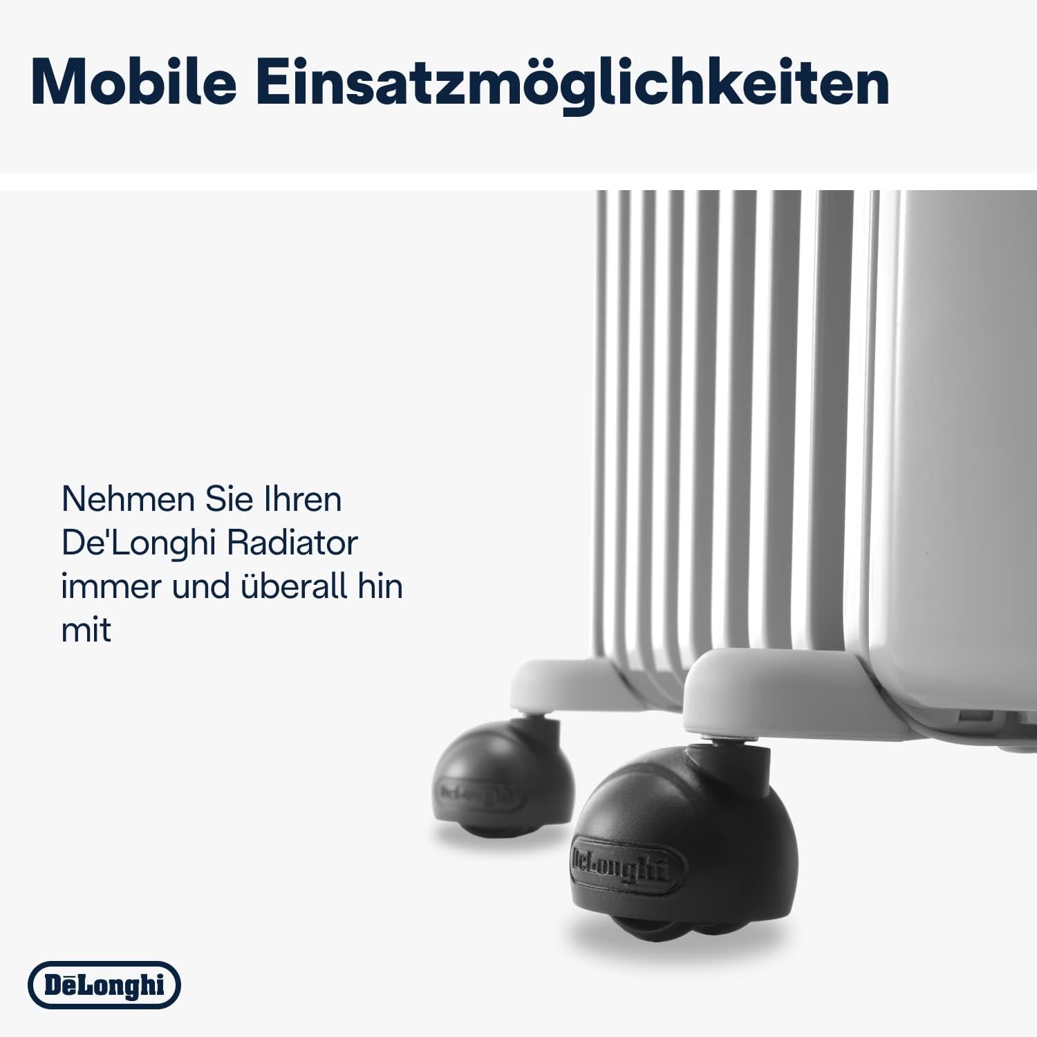 Радиатор De'Longhi RadiaS TRRS0715, непрекъснат контрол на температурата, мощност на отопление 1500 W, мобилен благодарение на дръжки за носене и предварително сглобени колела