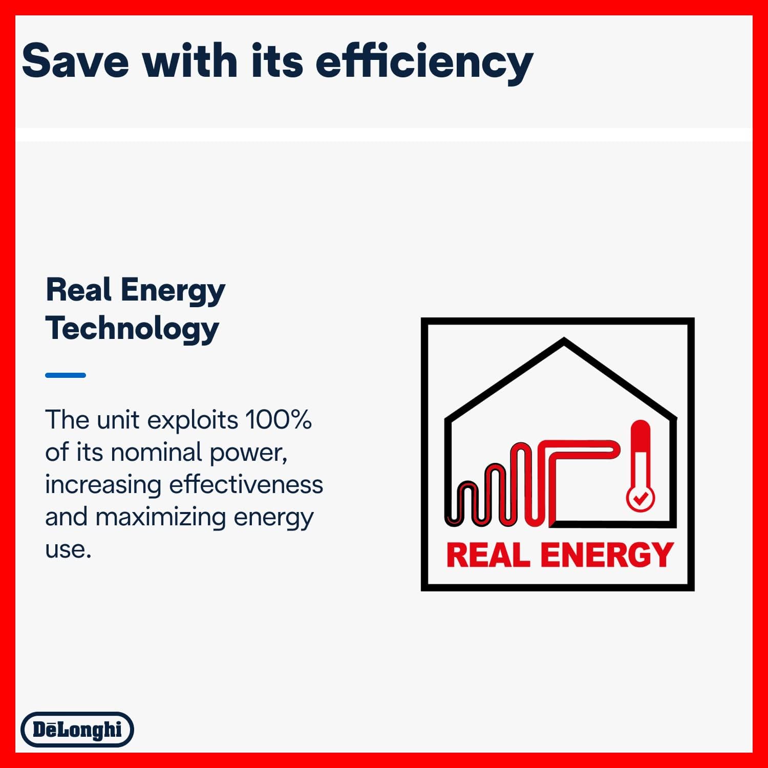 • Реална енергия Устройството повишава своята ефективност, като използва 100% от номиналната си мощност, без да превишава безопасните граници на повърхностната температура. По този начин безопасността се комбинира с бързо нагряване, за да се осигури максимален комфорт.