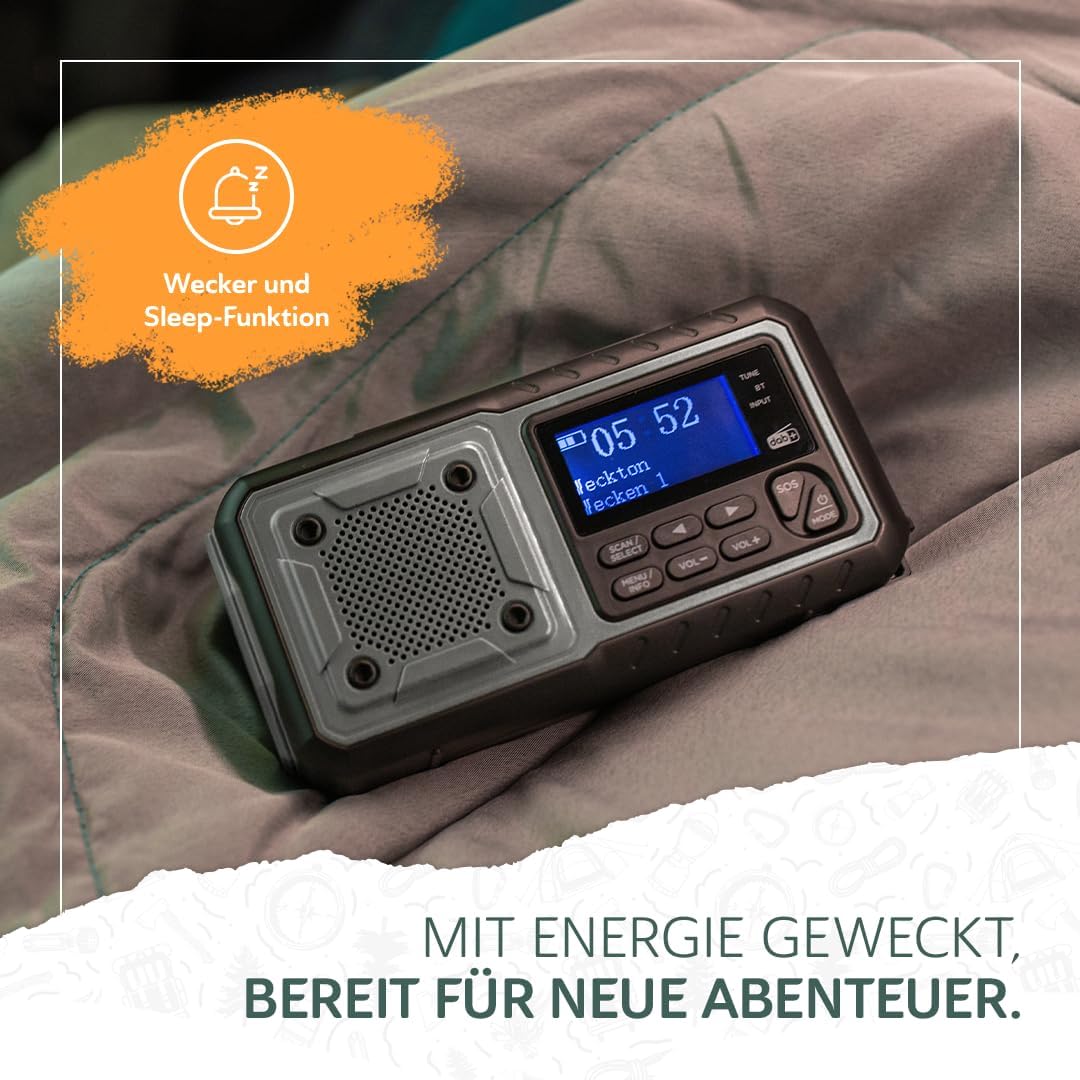Радио Acta Berg Crank, DAB+/FM, аварийно радио с манивела и батерия 5000 mAh, слънчево радио с будилник, ръчна манивела, оборудване за спешни случаи при затъмнение като фенерче и зарядно, SOS
