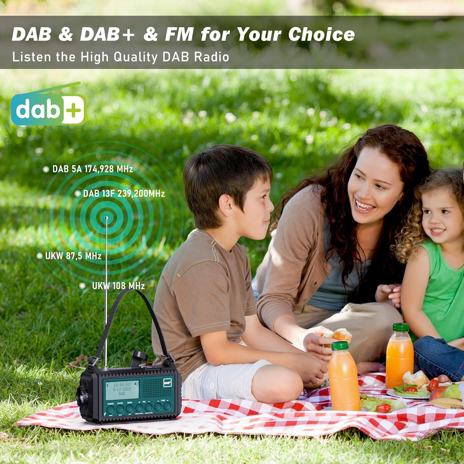 Радио Crank DAB+/DAB/FM с батерия 5000 mAh, презареждащо се, аварийно радио с фенерче и светлина за четене, преносимо къмпинг радио с функция за зареждане на мобилен телефон чрез USB, FM динамо, SOS аларма за...