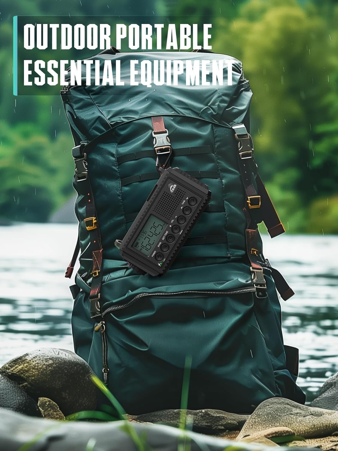 • IPX6 Водоустойчив и удароустойчив - Създаден за приключения: твърда ABS обвивка + карабинер - издържа на дъжд, прах и падания (тестван съгласно IPX6/IPX4). Прецизно цифрово радио: AM (520-1710 kHz) / FM (87.5-108 MHz) / SW (2.3-23 MHz) с LCD дисплей за честоти - приемане по целия свят!