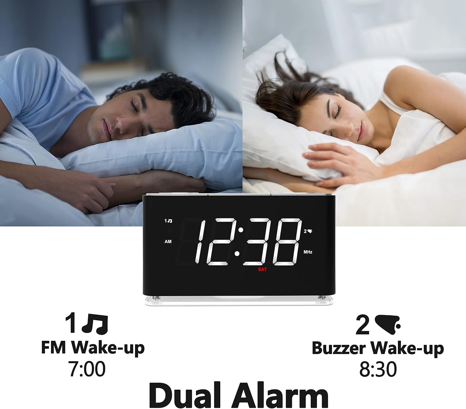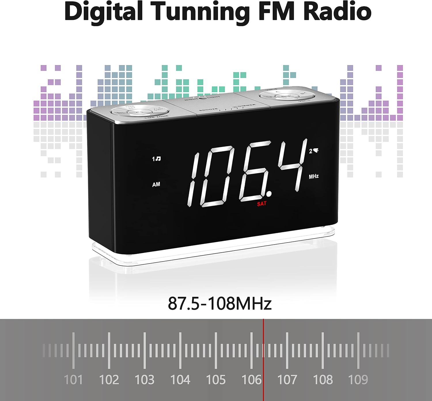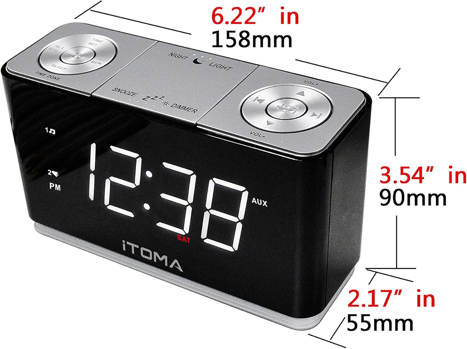 Dieser Wecker hat ein schlankes und modernes Design, das nur 15 x 11 x 5,8 cm ist und vom Netz angetrieben wird, was ihn zur idealen Uhr und Radio Größe für Ihren Nachttisch oder Schreibtisch macht.