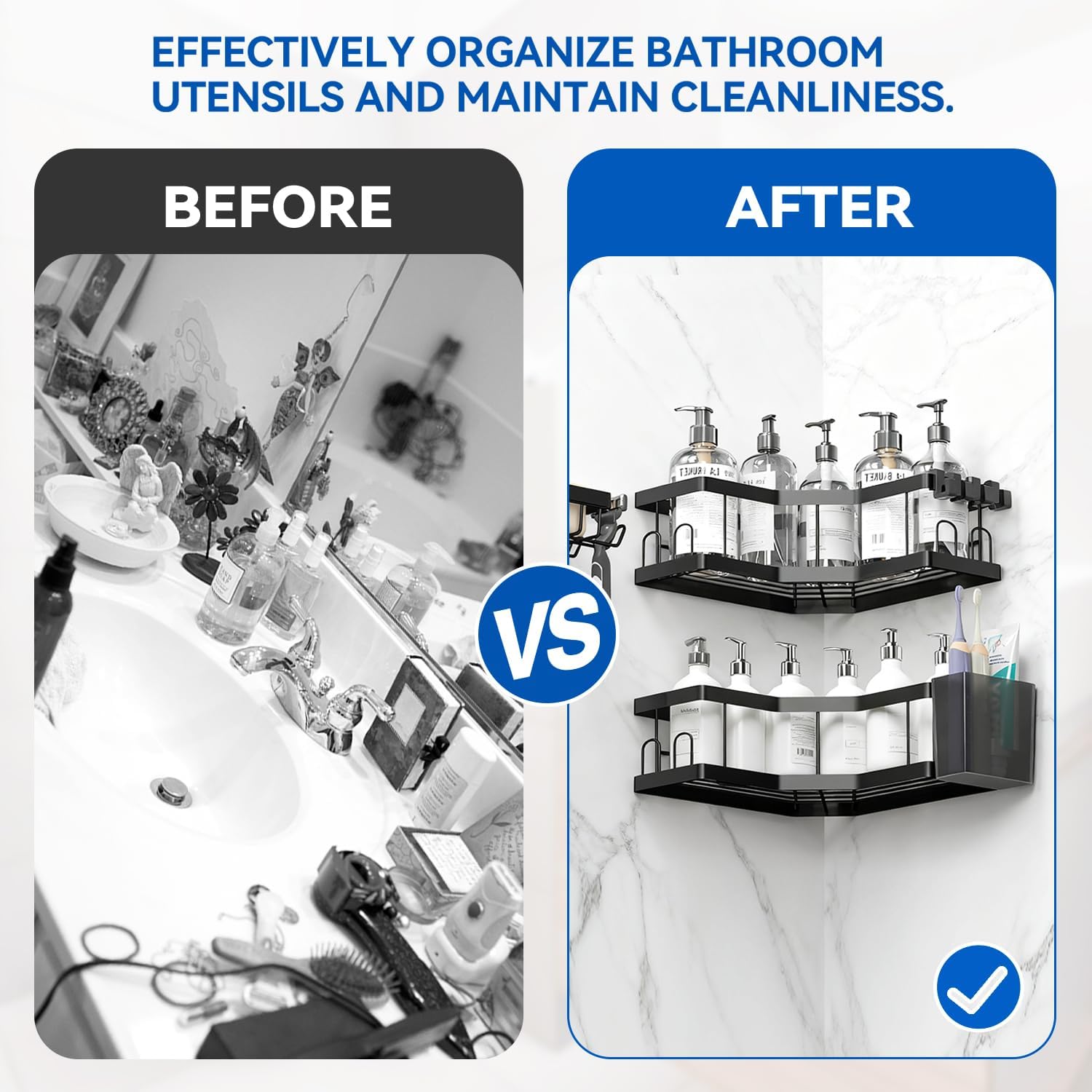 • Достатъчно място за съхранение: С компактен, но ефикасен дизайн, който увеличава максимално вертикалното пространство, осигурява достатъчно място за съхранение, така че можете ефективно да организирате необходимите вещи за баня и да поддържате стаята подредена на удобно място.