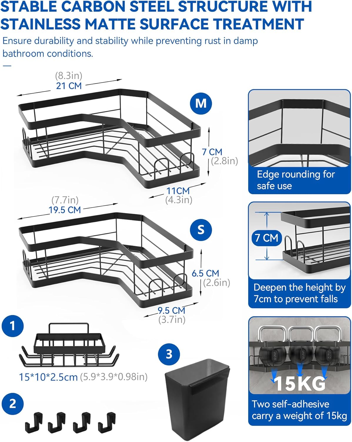 • Здрава конструкция от въглеродна стомана: Изработена от въглеродна стомана, което гарантира издръжливост и стабилност. Осигурява надеждно захващане за различни принадлежности за баня без клатушкане, а специалната конструкция гарантира твърдост на продукта и експлоатационен живот.