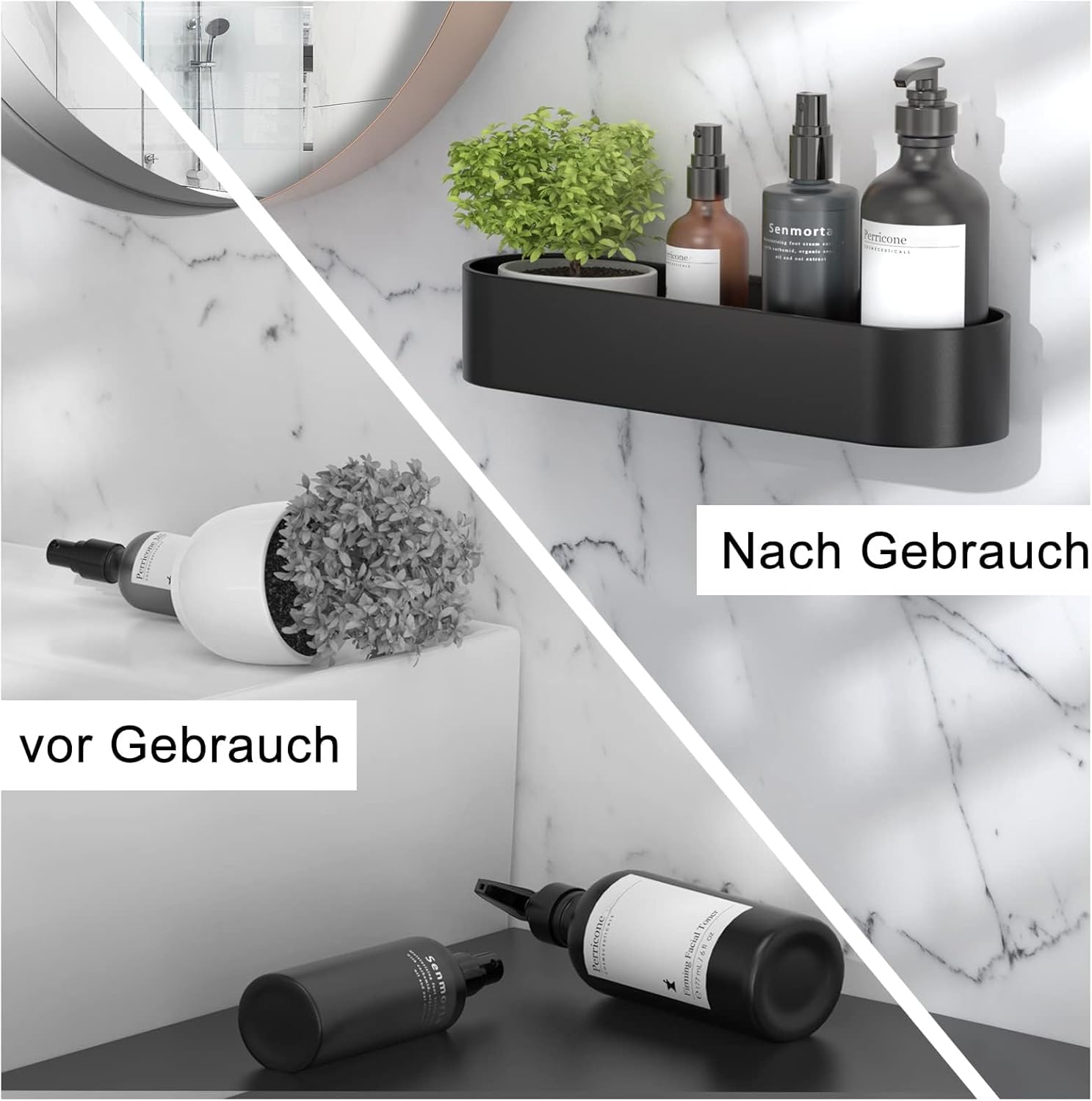 • Популярно: повдигнат парапет против падане, който предотвратява падането на предмети, подходящ за баня, кухня, спалня, хол, балкон. Идеален за шампоан, лосион, душ гел, балсам, сапун и почистващ препарат за лице