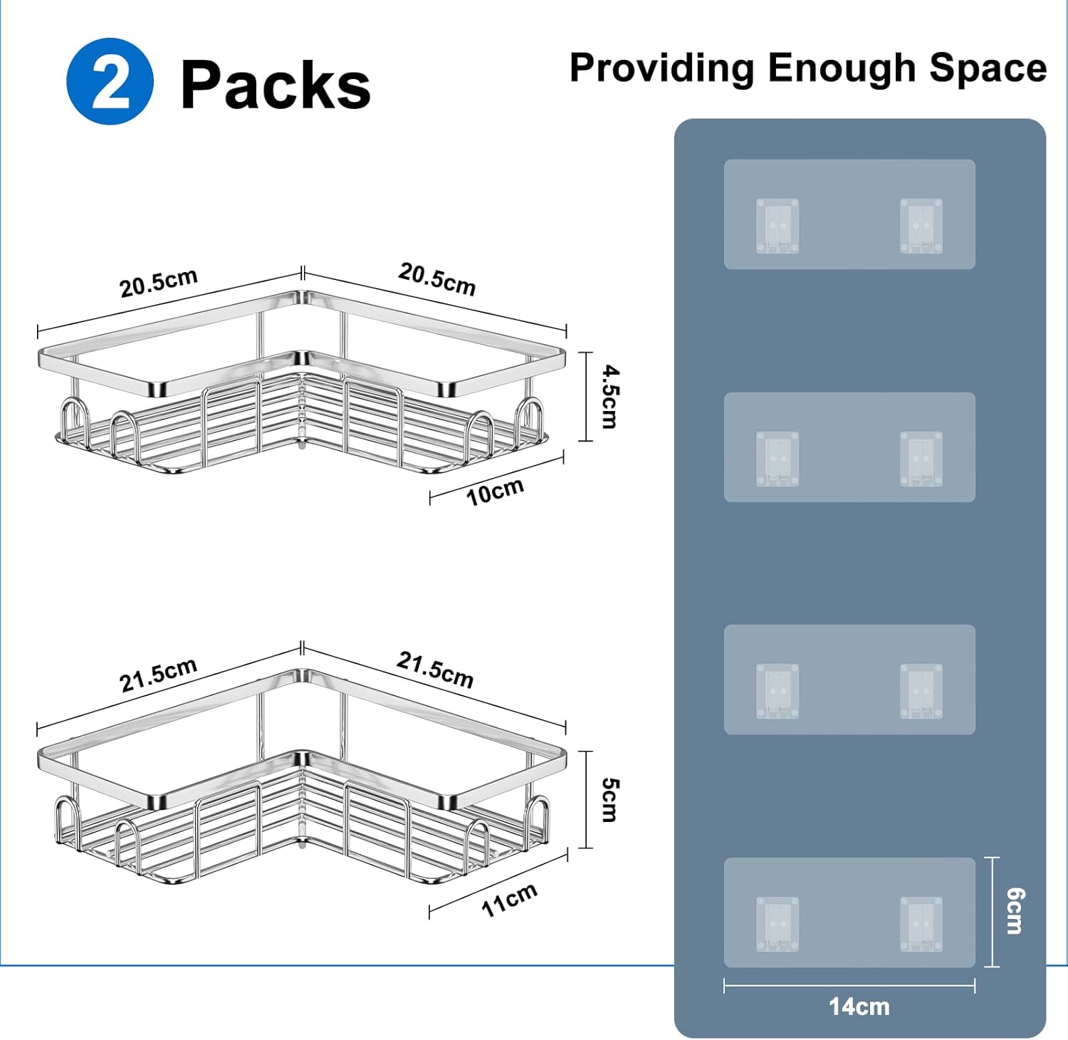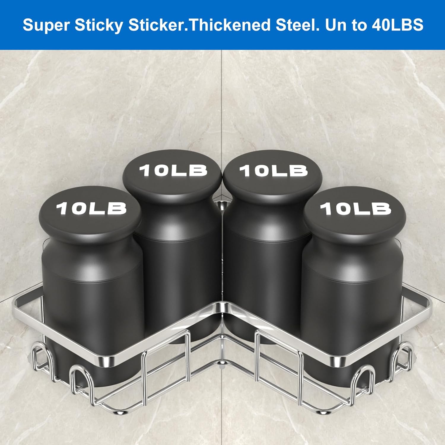• Товароносимост до 18 кг: прозрачното лепило е изработено от наноматериал, а кошниците за душ са изработени от удебелена стомана, не оставят следи, водоустойчиви са и са здрави. Кошницата за душ е тествана с множество тежести и може да издържи до 18 кг.