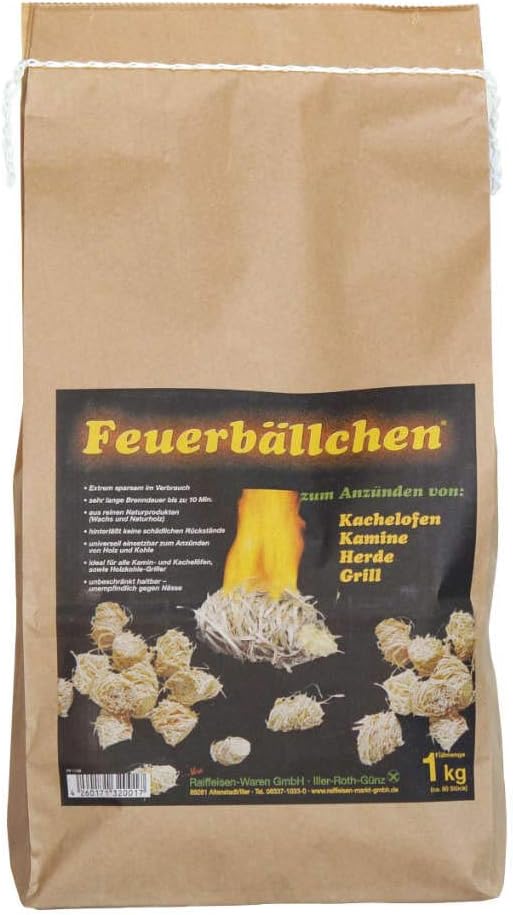 RaiffeisenWaren 4321900 Подпалка за камина, подпалка за огън, огнени топки (екологична подпалка, изработена от естествени продукти - восък, естествено дърво; време на горене приблизително 10 мин.) 1 кг