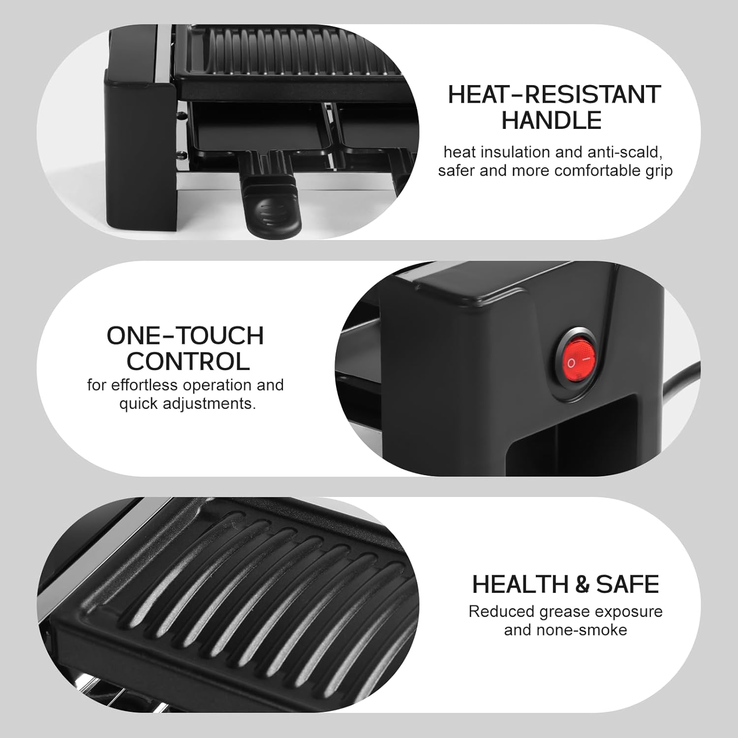 • Вашият перфектен мини раклет грил: независимо дали е романтична вечеря или социална вечер - този раклет грил за 2 души гарантира незабравими моменти