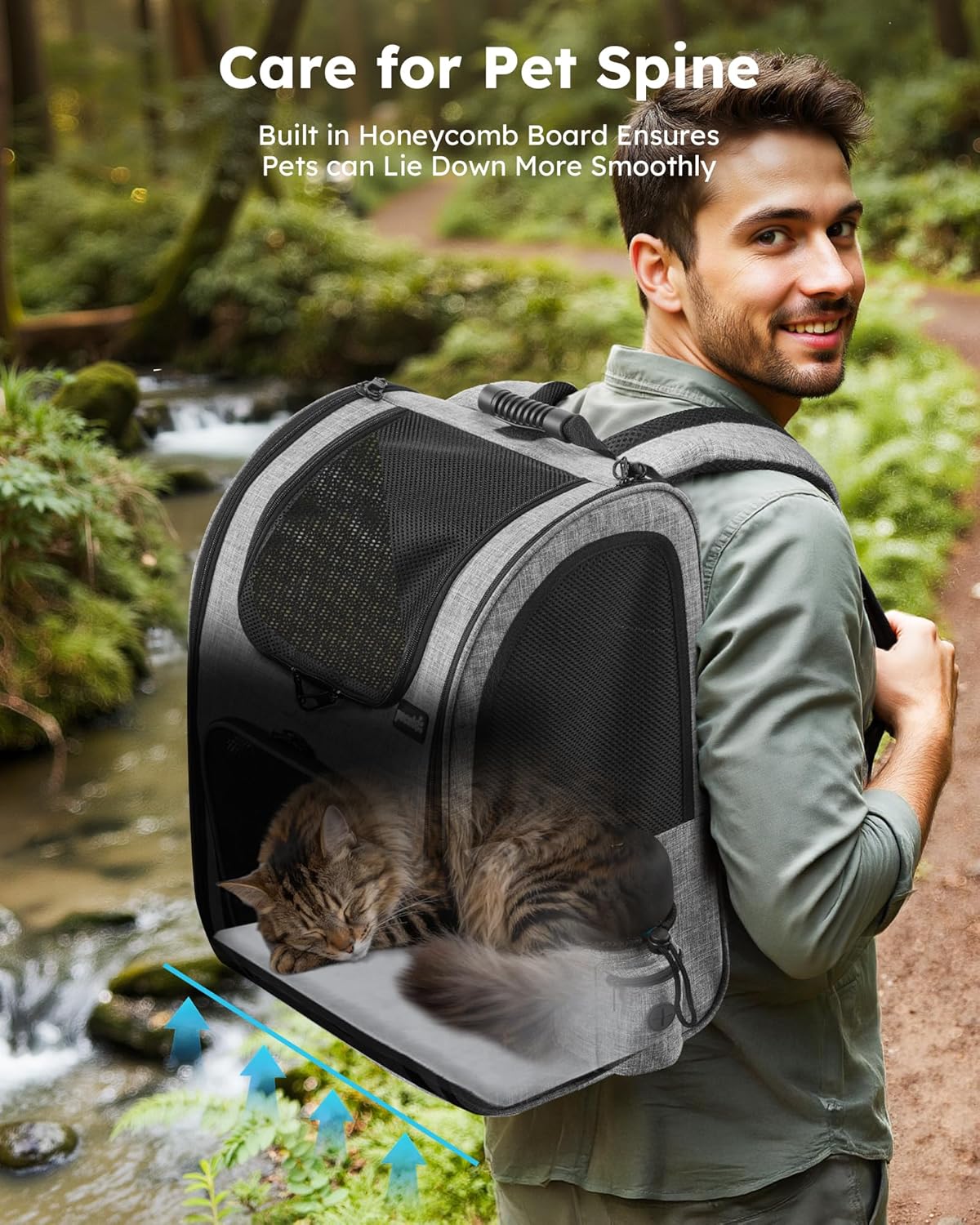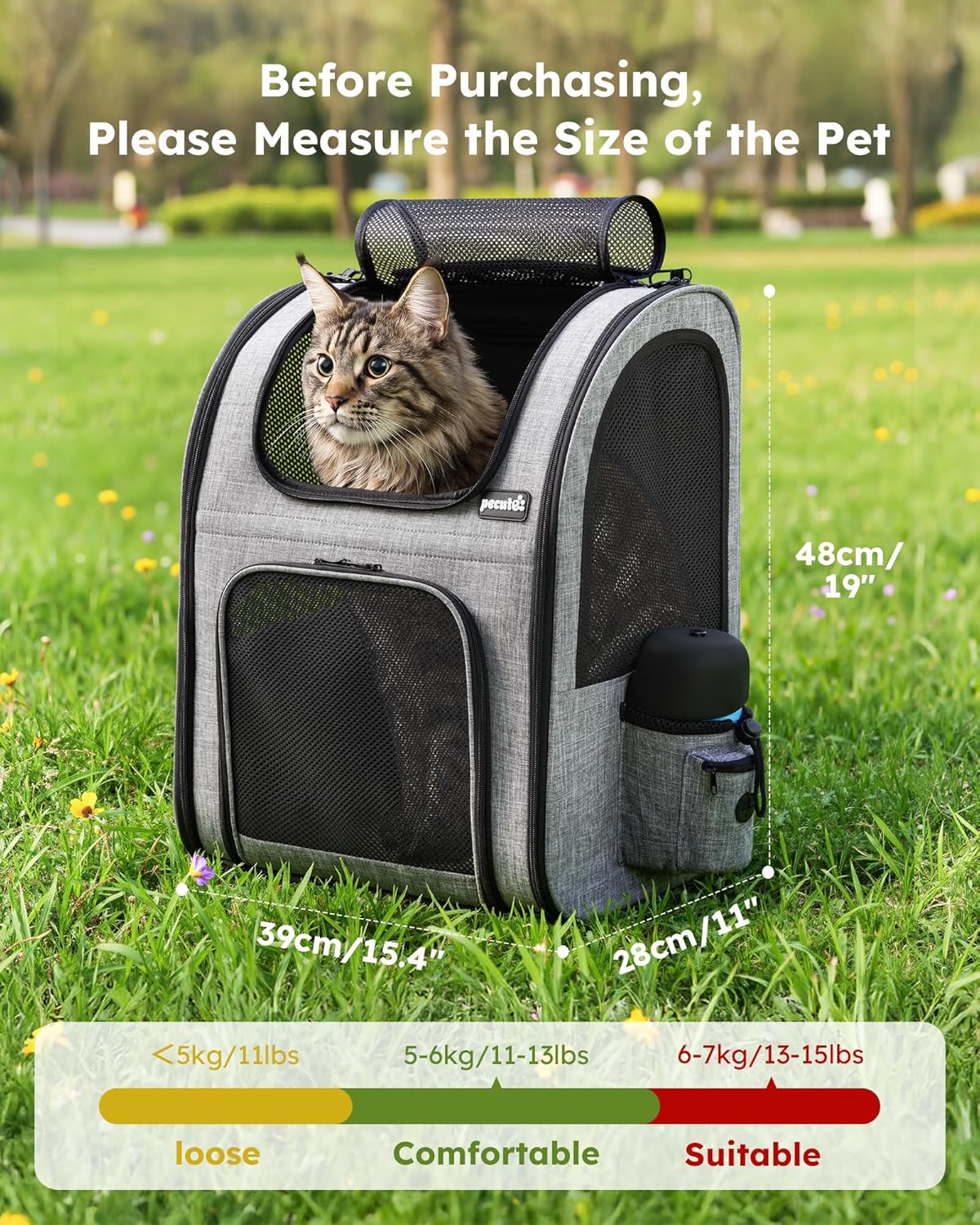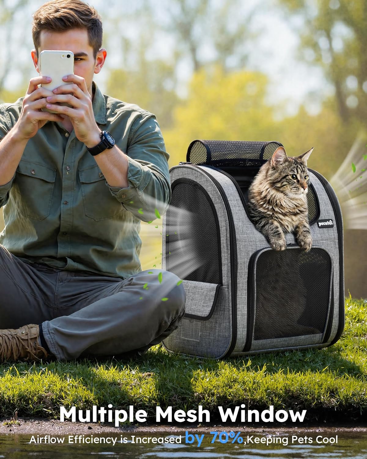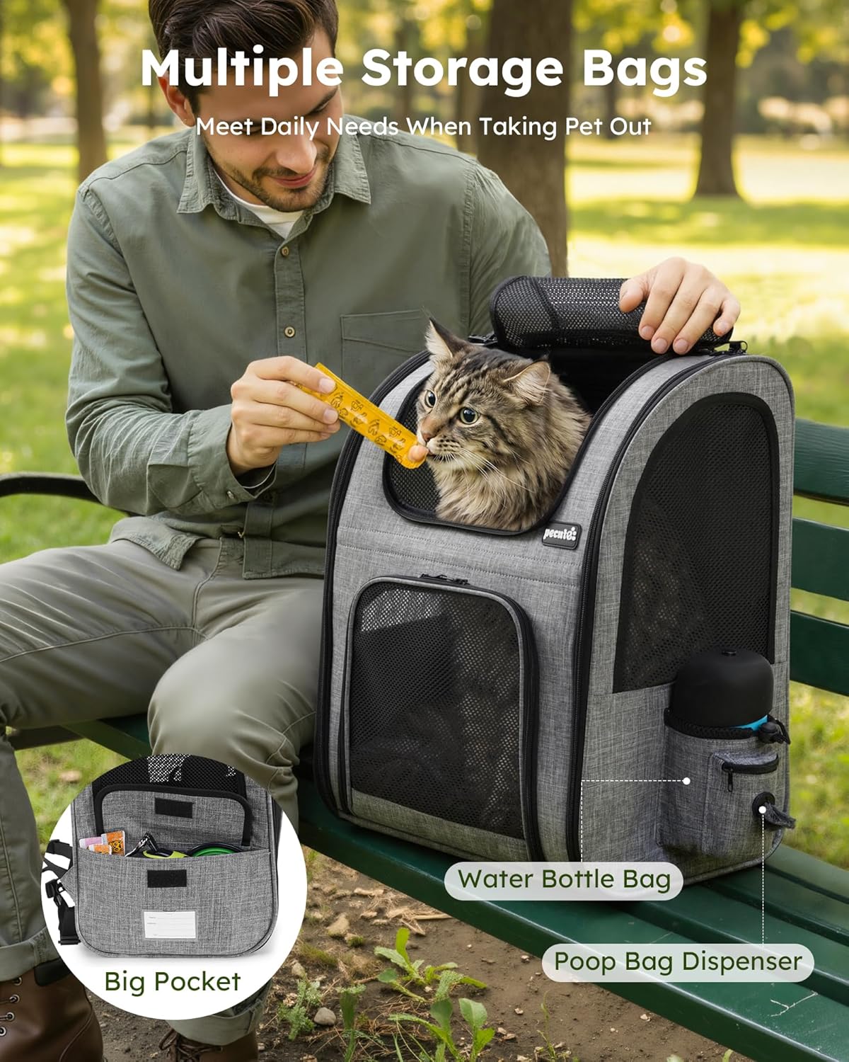 Pecute team designed this multifunctional pet backpack with pet safety and pet owner's convenience in mind.