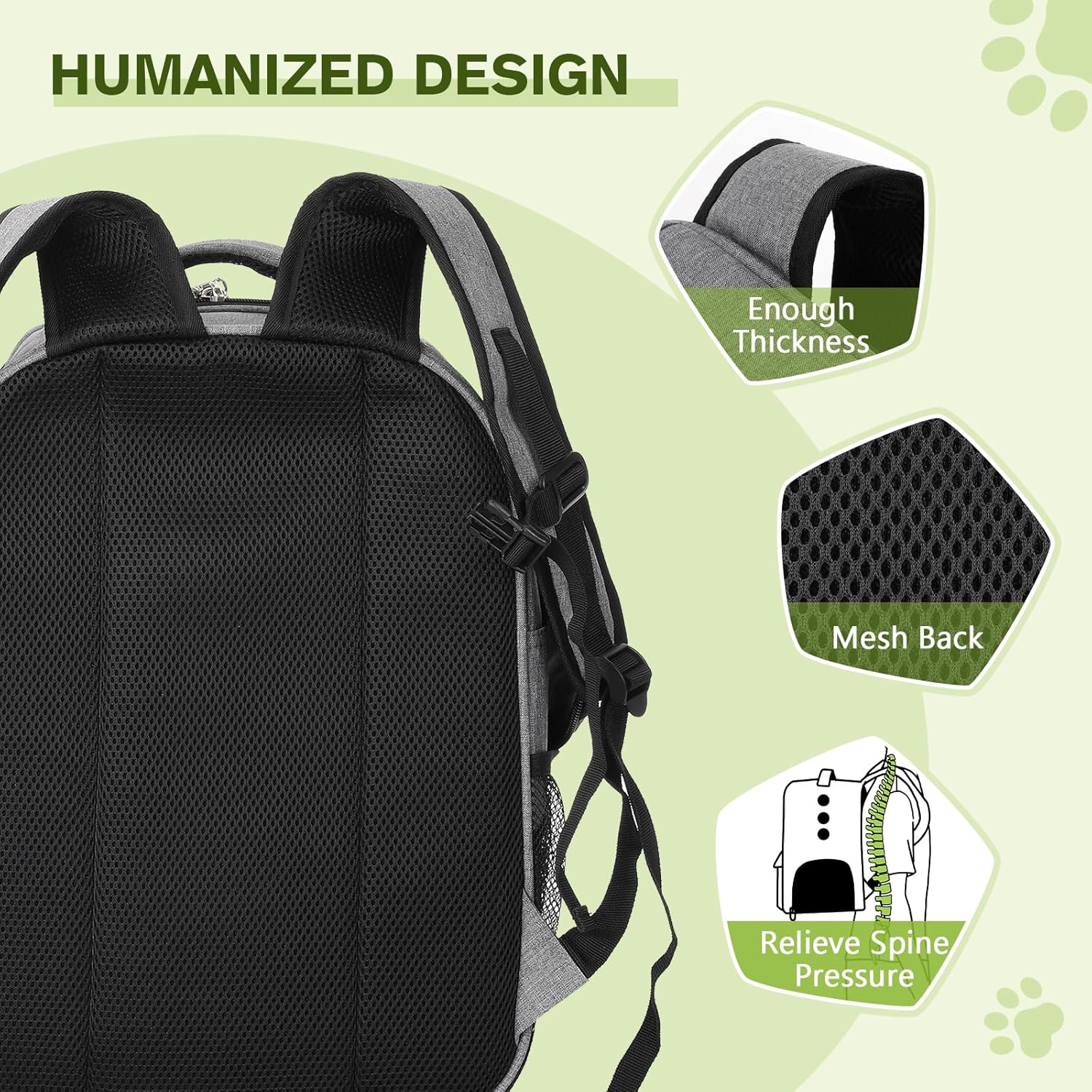 • Нов дизайн: раницата за домашни любимци pecute е научно разделена на видима зона и скрита зона, с прозрачен мрежест прозорец в горната половина, така че собственикът да може да наблюдава състоянието на котката навреме. Долната половина осигурява достатъчна безопасност за домашните любимци, за да се избегнат стресови реакции по време на разходки на открито, туризъм и пътуване.