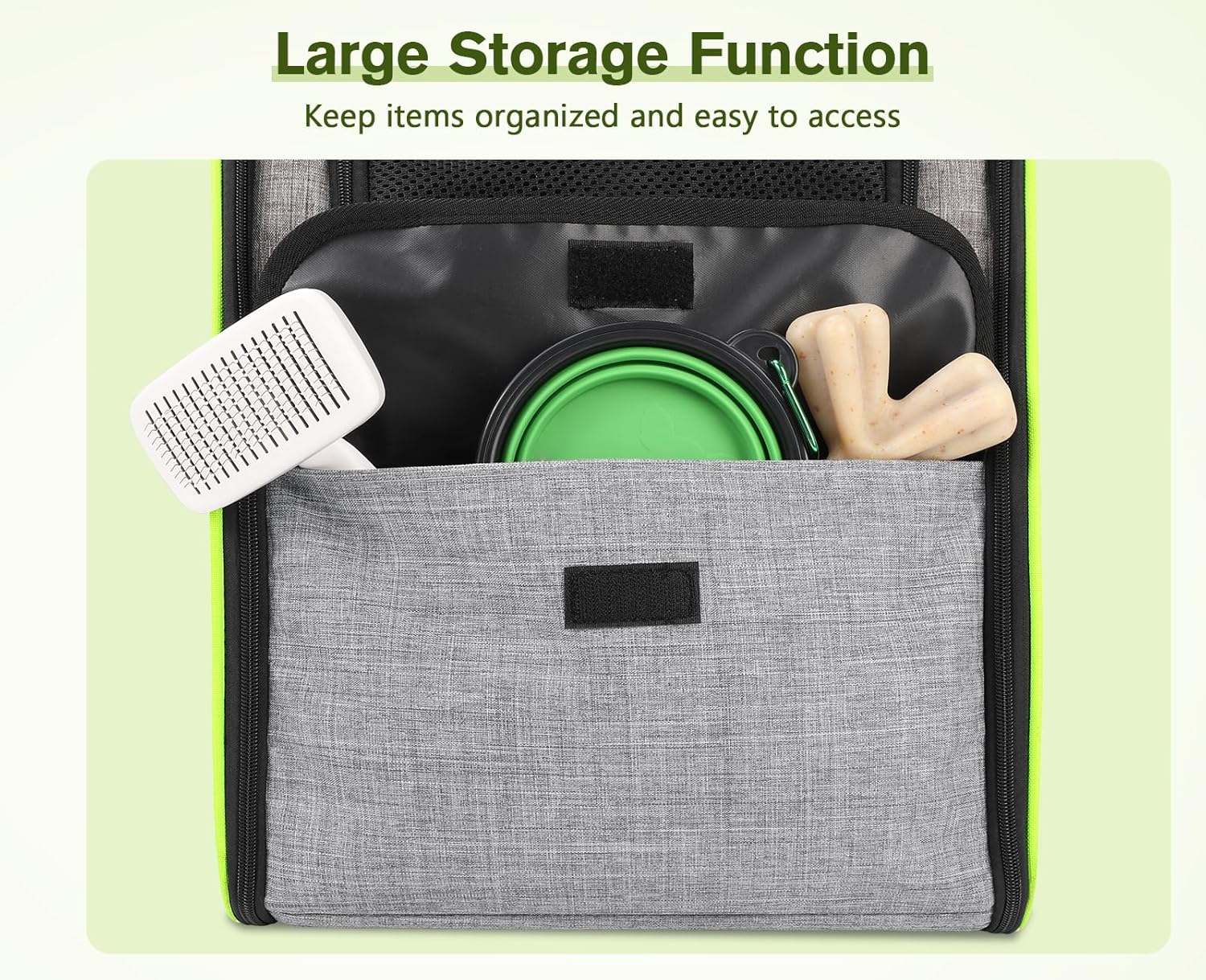 • 【Много място】: Просторната чанта предлага много място, което позволява на вашия домашен любимец да се движи. Отстрани на чантата има отделения-органайзери за най-важните неща, от които вашият домашен любимец се нуждае. Идеална за ежедневна употреба. Също така е перфектна като клетка или къщичка за домашни любимци за семейни пътувания и дейности на открито. Тази чанта за транспортиране на домашни любимци е задължителна за любителите на домашни любимци, независимо дали е като раница за котка или куче. Топло напомняне: Когато домашният любимец влезе в чантата, моля, прикрепете предпазна каишка към нашийника, за да предотвратите бягството му някъде, и затворете всички самозатварящи се ципове на раницата.