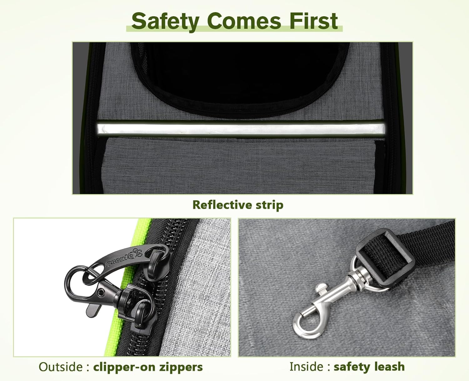 • 【Отлична безопасност】: С добре обмислен дизайн за стабилност, можете да излизате безгрижно! Двойните гръдни презрамки намаляват клатушкането на чантата за котки при ходене и облекчават раменете и гърба. С каишка, предотвратяваща изскачане, и цип със заключване, дори леко нахални домашни любимци са в безопасност. Чанта за транспорт на котки и чанта за транспорт на кучета с двойна защита.