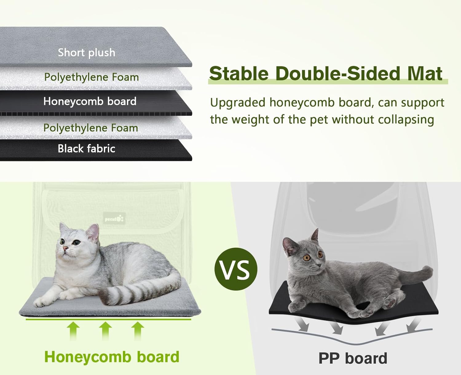 • 【Стабилна и удобна】: Материалът с двойно предназначение за зима и лято преодолява сезонните ограничения и прави чантата за домашни любимци използваема през всички сезони. Вградените меки гъби повишават комфорта, докато издръжливите дървени панели осигуряват по-добра опора за теглото. Чантата за превоз на котки е оборудвана с множество врати с цип, които улесняват влизането и излизането на вашия домашен любимец. Тази стабилност важи и за чантата за транспортиране на кучета или двойната раница за котки.