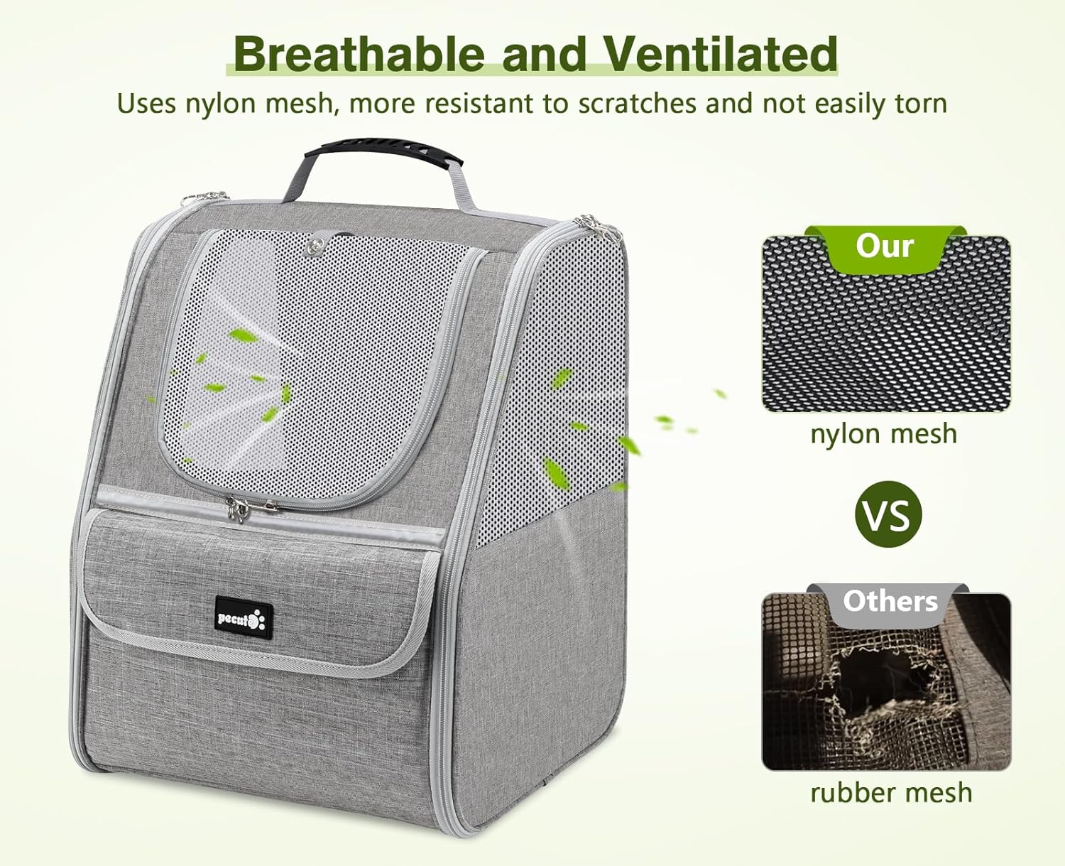 Раница за котки pecute с мрежест прозорец, преносима и сгъваема чанта за котки, дишаща и лека чанта за кучета, многофункционална за пътуване през нощта, светло сива, до 6 кг
