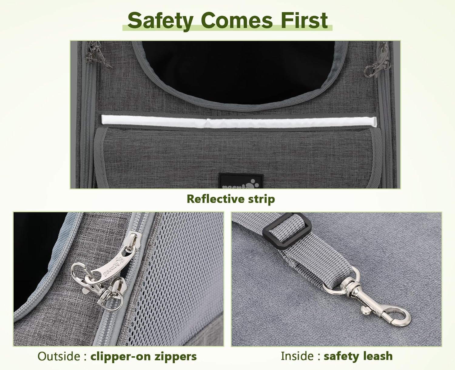 • 【Отлична безопасност】: С добре обмислен дизайн за стабилност, можете да излизате безгрижно! Двойните гръдни презрамки намаляват клатушкането на чантата за котки при ходене и облекчават раменете и гърба. С каишка, предотвратяваща изскачане, и цип със заключване, дори леко нахални домашни любимци са в безопасност. Чанта за транспорт на котки и чанта за транспорт на кучета с двойна защита.