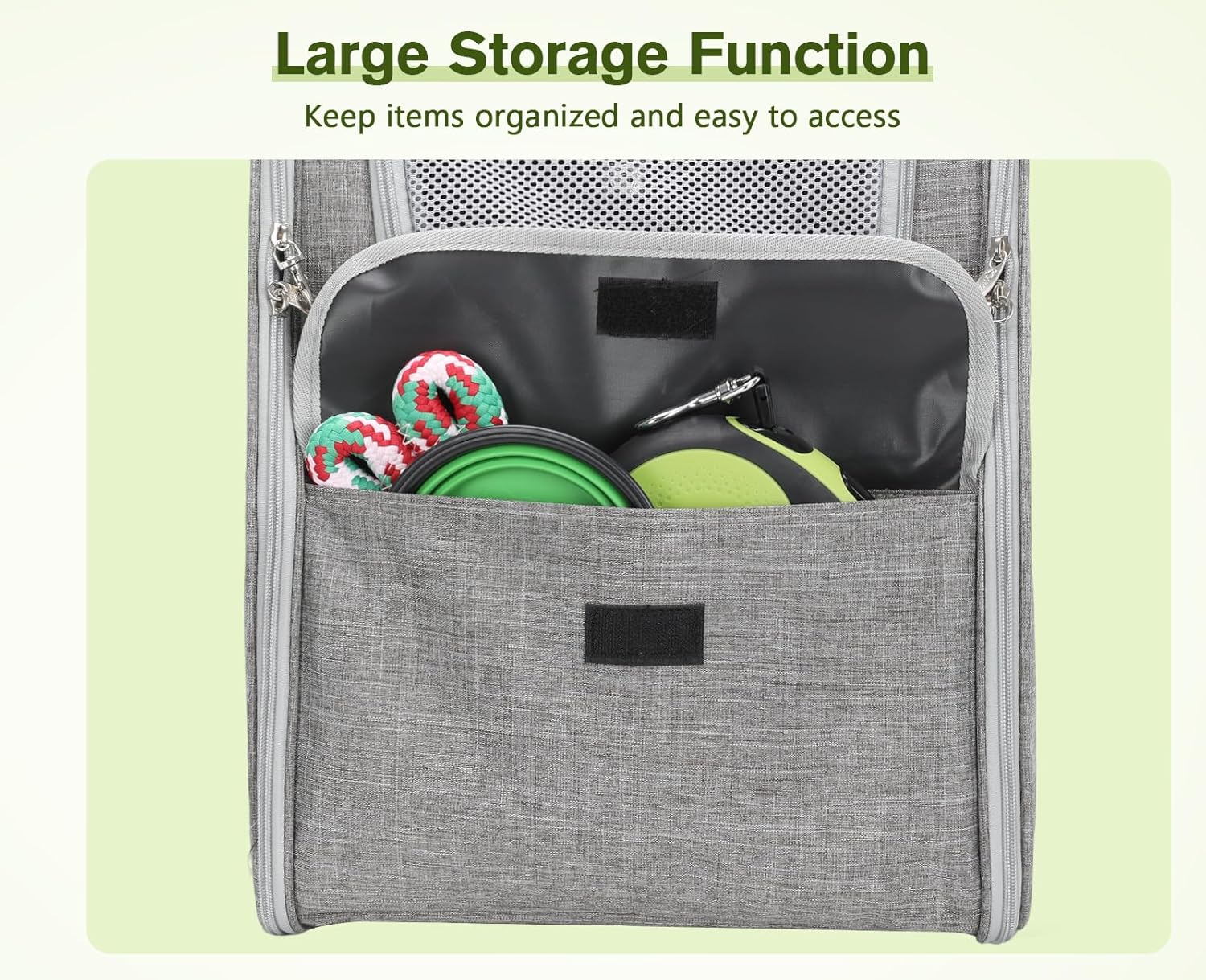 • 【Много място】: Просторната чанта предлага много място, което позволява на вашия домашен любимец да се движи. Отстрани на чантата има отделения-органайзери за най-важните неща, от които вашият домашен любимец се нуждае. Идеална за ежедневна употреба. Също така е перфектна като клетка или къщичка за домашни любимци за семейни пътувания и дейности на открито. Тази чанта за транспортиране на домашни любимци е задължителна за любителите на домашни любимци, независимо дали е като раница за котка или куче. Топло напомняне: Когато домашният любимец влезе в чантата, моля, прикрепете предпазна каишка към нашийника, за да предотвратите бягството му някъде, и затворете всички самозатварящи се ципове на раницата.