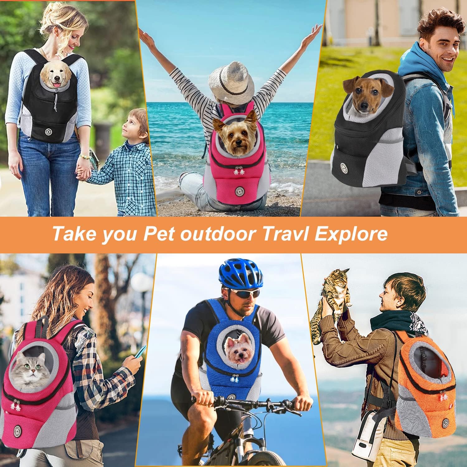 • Регулируем видим отвор: раницата за носене на кучета има отвор за врата с връзки в горната част на раницата, така че вашият домашен любимец да стърчи главата си, да му е удобно и видимо и да се наслаждава на забавления с домакина си на открито и на закрито. Идеална за пътувания на открито, тренировки, разглеждане на забележителности, къмпинг, туризъм и др.