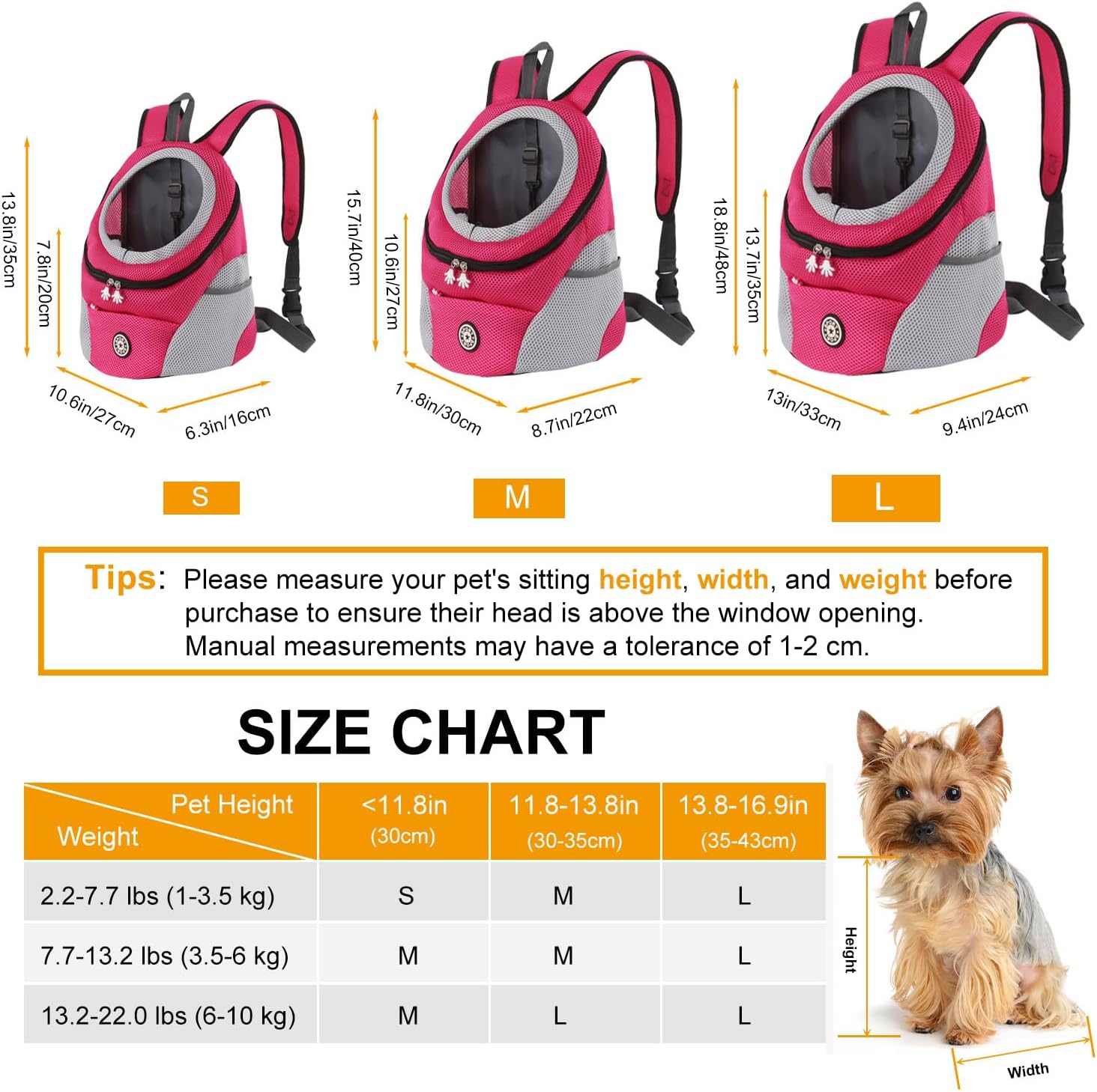• Размер Среден -- Препоръчително тегло от 7,7 до 13,2 фунта (3,5-6 кг), измерете дължината и теглото на вашия домашен любимец заедно, за да получите точна референтна стойност според таблицата с размери. Подходящ за кученца, малки и средни кучета, мини пудел, мини шнауцер, мини теди, чихуахуа, малки домашни любимци и др.