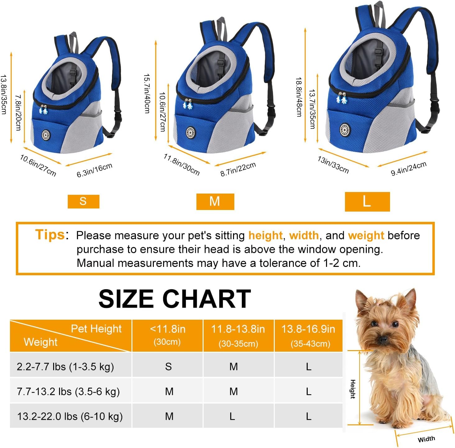 Раница за кучета, чанта за кученца, малка предна чанта за домашни любимци с дишащ дизайн за глава навън, водоустойчива основа за пътуване, открито, туризъм