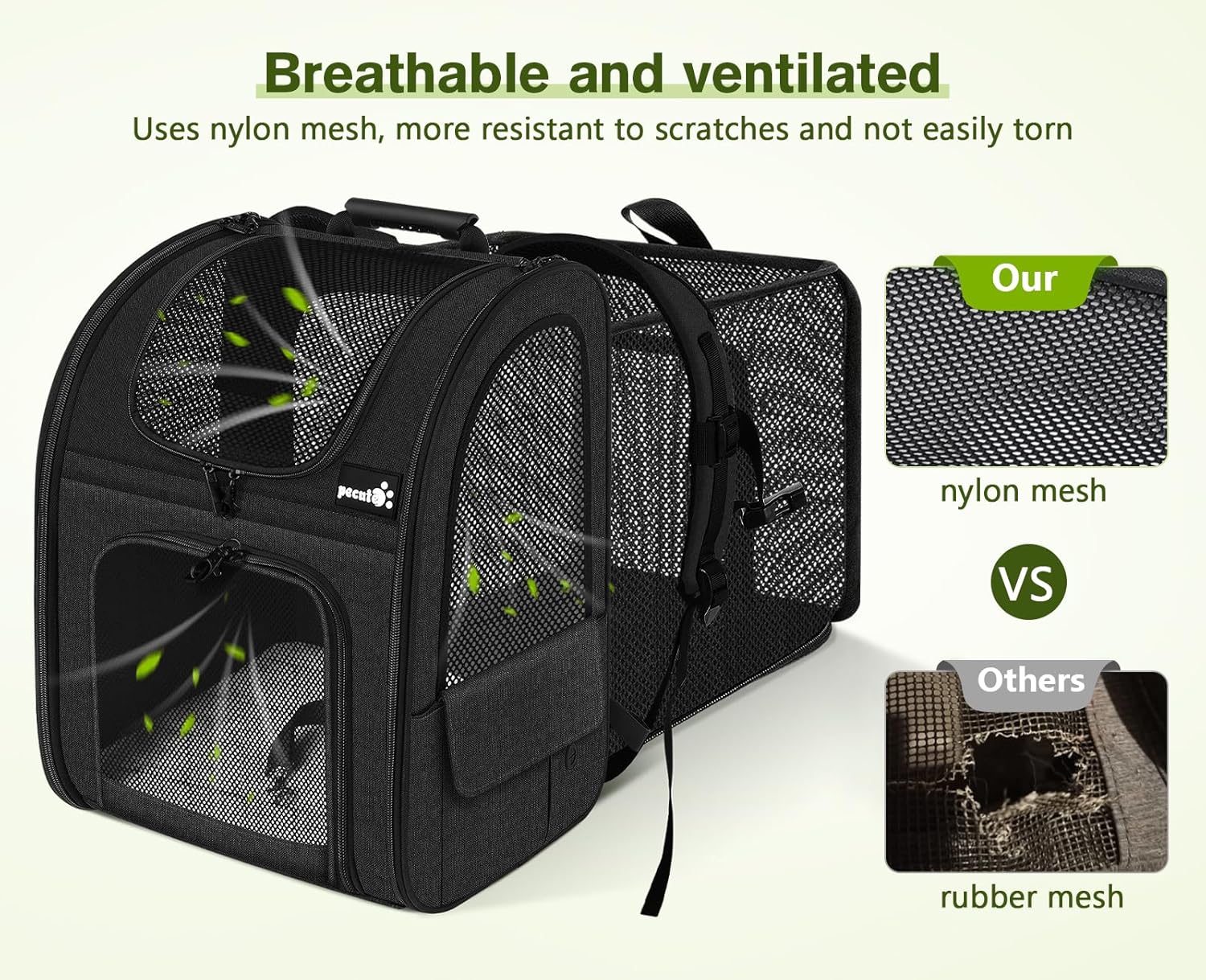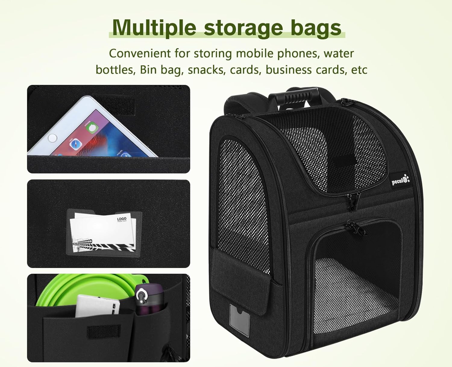 Pecute team designed this multifunctional pet backpack with pet safety and pet owner's convenience in mind.