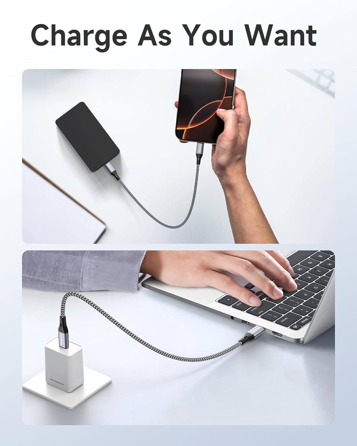 • Подобрен 100 W USB-C към USB-C кабел: Това е USB кабел за зареждане 100 W, което означава, че има един и същ USB-C порт от двете страни. Необходимо ви е USB-C зарядно устройство, за да заредите устройството си. С подобрен интегриран e-marker чип, този USB-C към USB-C кабел поддържа максимална мощност на зареждане от 100 W (20V/5A), което е три пъти по-бързо от предишния 60 W USB C към USB C кабел. Съвместим с 30 W/45 W/60 W/65 W/96 W/100 W USB Type C зарядни устройства.