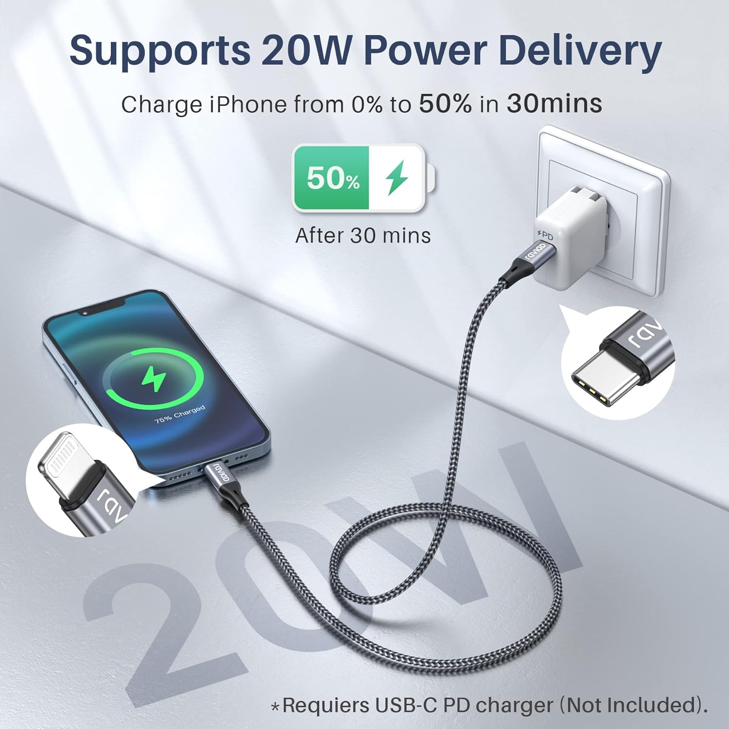 Всеки RAVIAD USB C Lightning кабел съдържа чип за оторизация, издаден от Apple, за да се гарантира 100% съвместимост с вашите устройства.