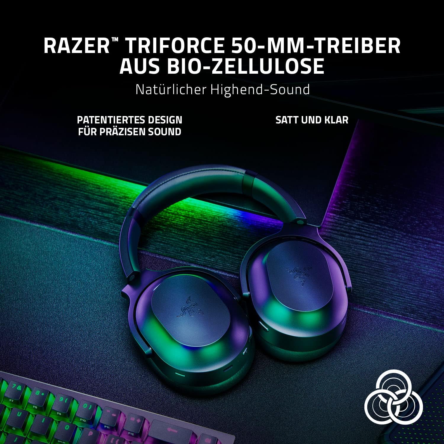 • Razer TriForce 40 мм драйвери за Hi-Fi звук: Нашият патентован дизайн на 3-компонентните драйвери осигурява изключителни високи, средни и баси, които не звучат кално или неопределено, което позволява по-завладяващо гейминг изживяване и по-динамично слушане на музика и видеоклипове.