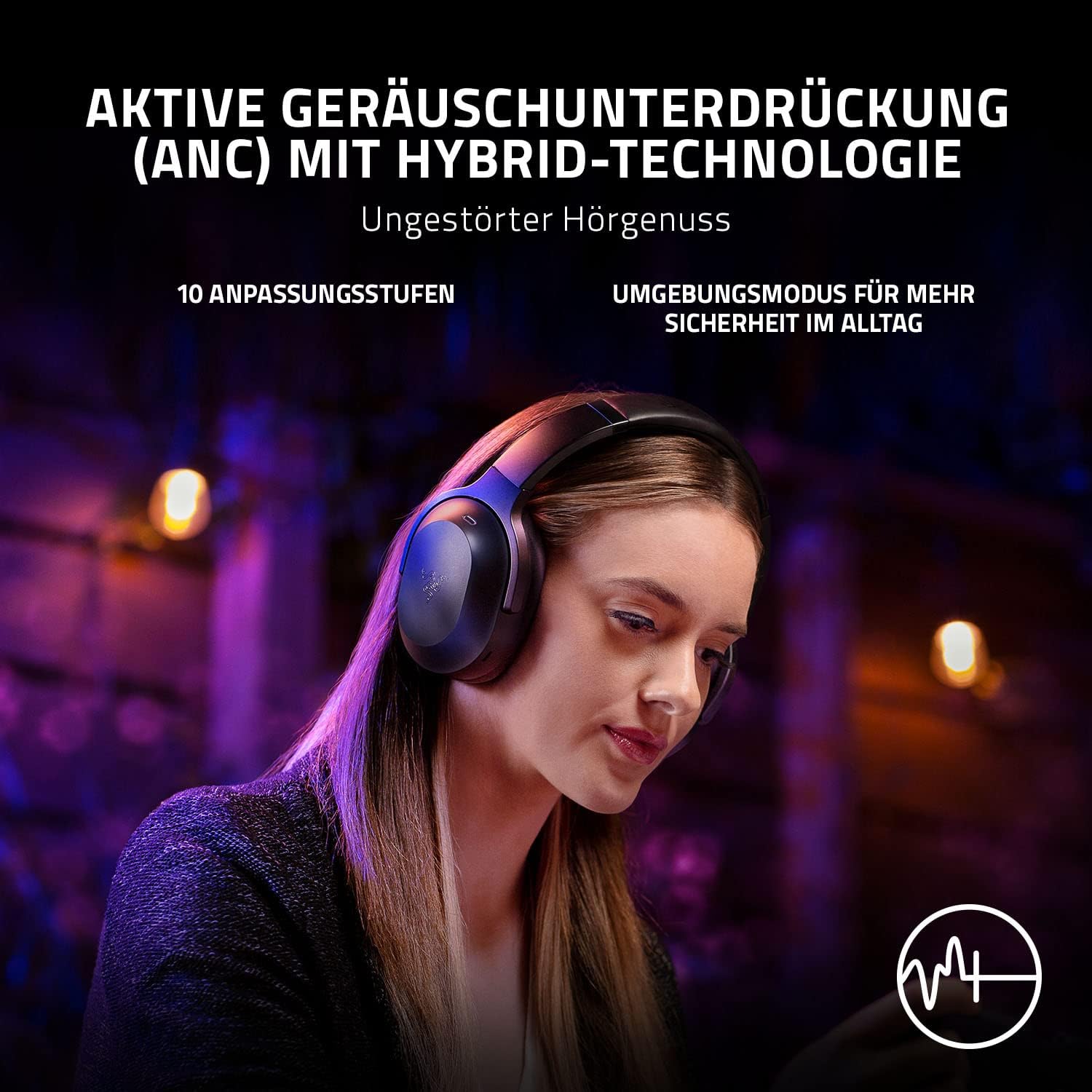 • Razer SmartSwitch Dual Wireless за светкавично бързо превключване между Razer HyperSpeed ​​​​Wireless и Bluetooth: Слушалките могат удобно да превключват мигновено между бързи 2.4 GHz и Bluetooth, което ви позволява безпроблемно да превключвате между компютър/конзола и телефон.