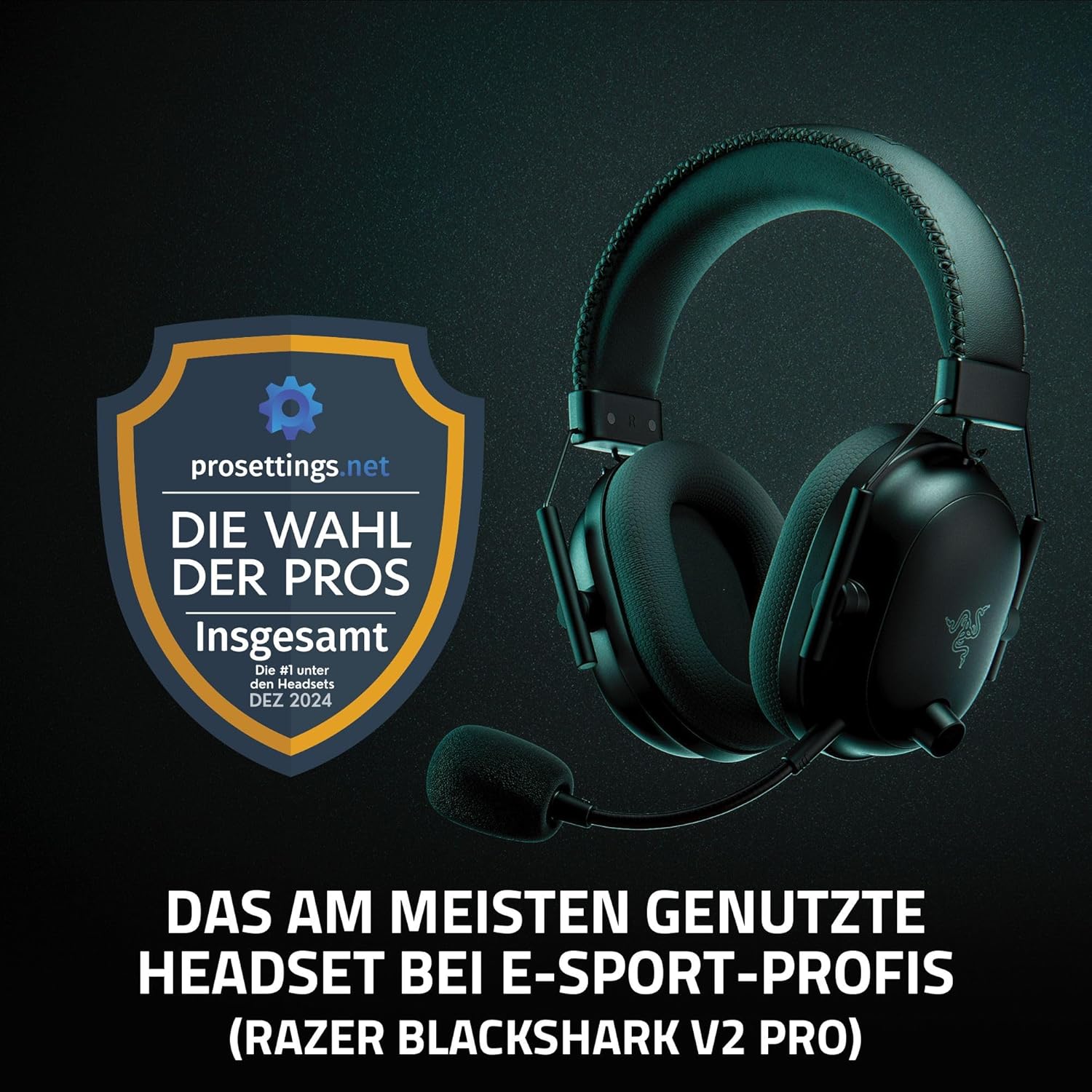 Razer BlackShark V2 Pro (2023) безжични слушалки за компютър Premium E-Sports (HyperClear супер широколентов микрофон, Triforce Titanium 50 мм драйвер, HyperSpeed ​​​​безжична технология, 70 часа живот), черни