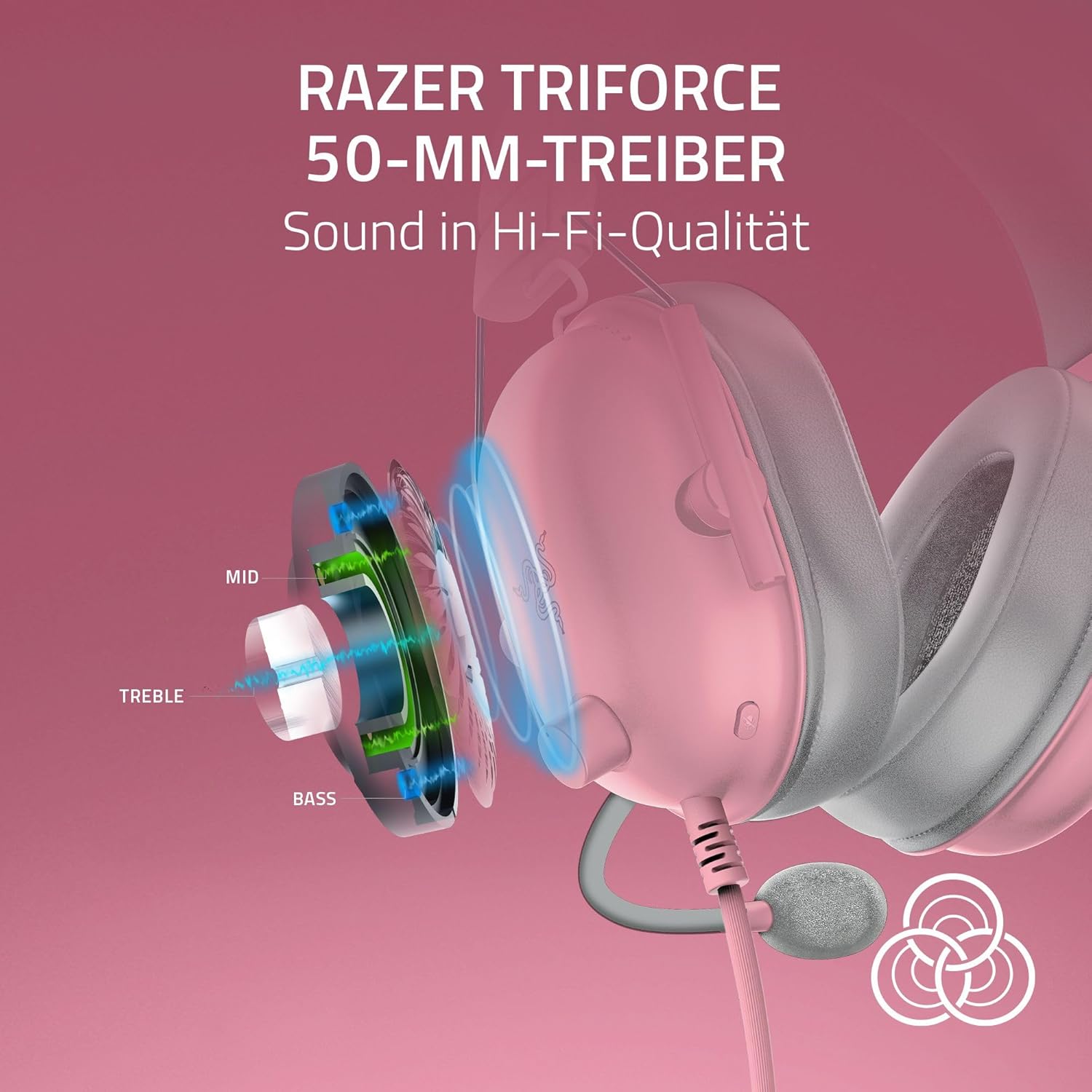• Razer TriForce Titanium 50 мм драйвери - за ясен и мощен звук: Диафрагмите с титаниево покритие осигуряват допълнителна яснота, а нашият иновативен дизайн разделя драйвера на три части за индивидуална настройка на високите, средните и ниските честоти - за по-ярък и ясен звук с по-богати високи честоти и по-мощен бас.